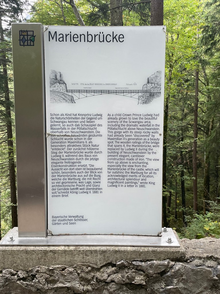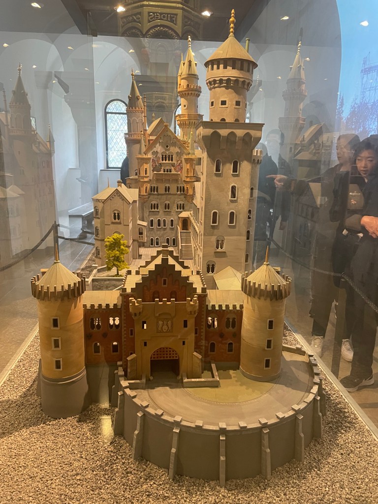 We learned about King Ludwig. He became king at age 18. He was eccentric and loved architecture, French history, Wagner’s operas, Medieval tales with heroes and princesses, he had plenty of money and didn’t enjoy ruling, so he left that to others so he could build castles. He grew up in his father’s castle, Hohenschwangau on the next mountain over. There were murals of the knight’s tales in both castles on most of the walls. He had good taste, but it was all over the top. He wanted to be like the king of all kings. But he didn’t want anyone in his castle he didn’t know. He was a recluse. He never married. He broke off an engagement. He was gay in a day when a king needed to have an heir and homosexuality was a crime with a serious punishment. Ludwig obsessed over French culture and people from 200 years before his time, often eating in private, but talking to his “French friends.”
