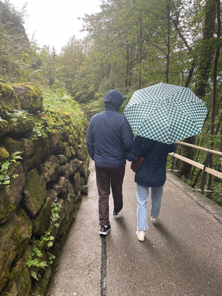 The bus ride takes you up the mountain and lets you out in the woods near the Marien Bridge that spans 2 cliffs with the waterfall below them. Walking on the wooden planks was a little scary. The view of the castle was spectacular. Wow. The view is across the wooded ravine to the castle perched up on a precipice hill with a grand valley below filled with fields and woods and lakes. It was absolutely breathtaking. Heavenly. So much beauty in one view. We just stood there soaking it all in.