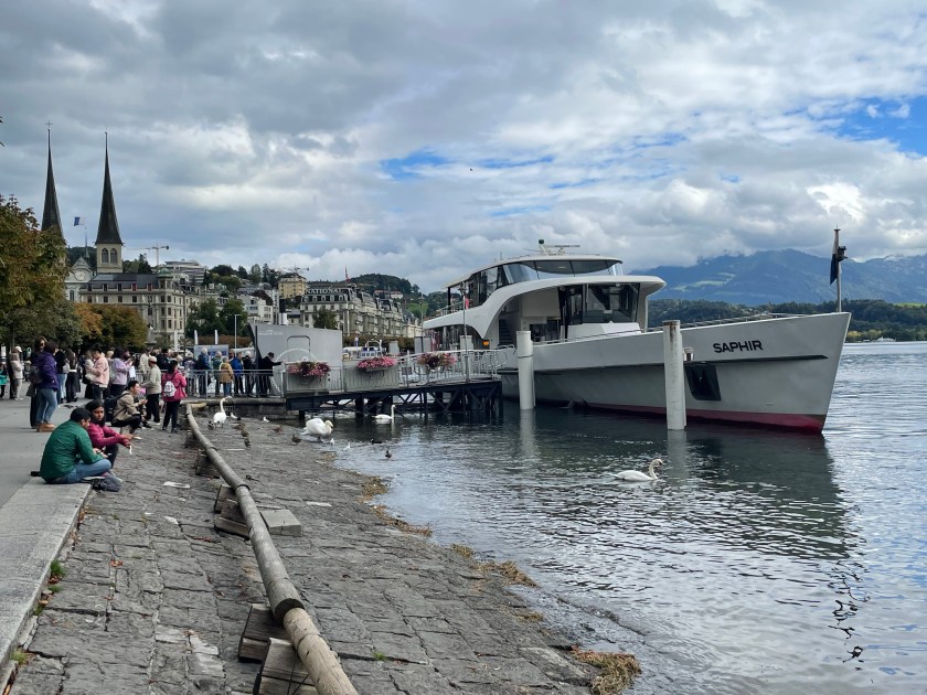 We bought tickets for a 1 hour cruise around part of the lake. It was nice and relaxing. And so very scenic. The boat was full of tourists, mostly from Asia.