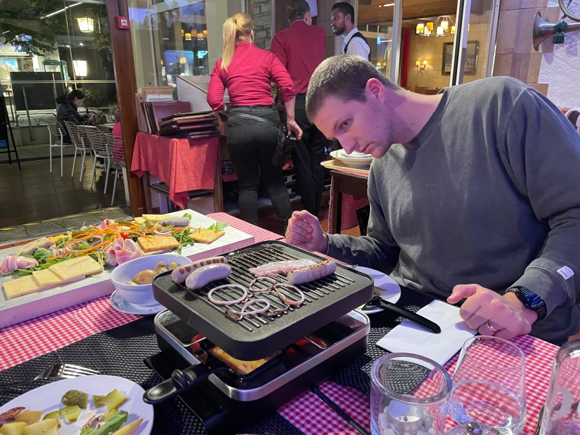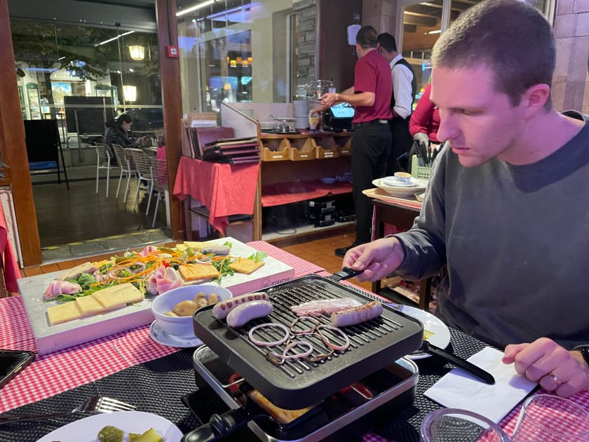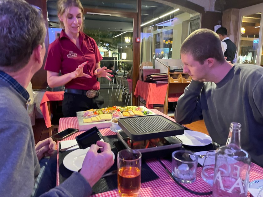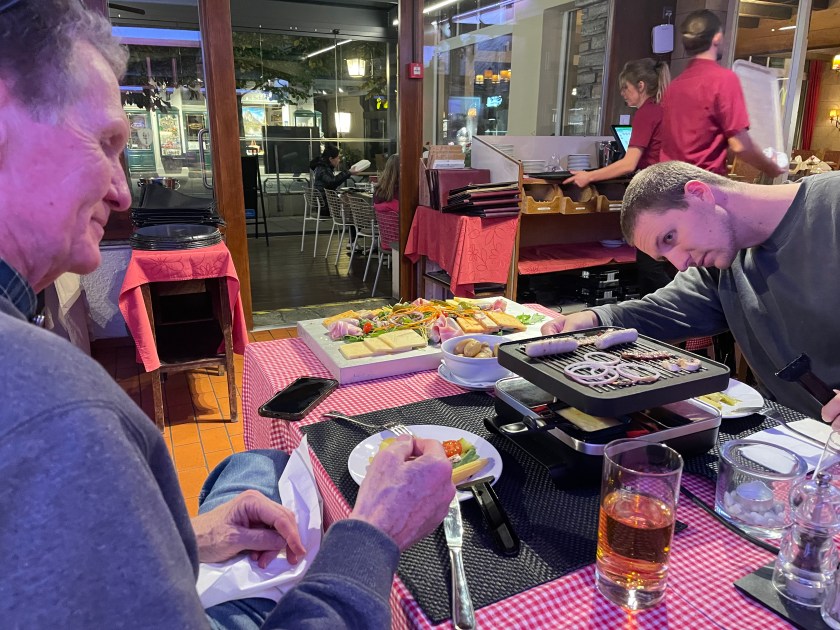 For dinner tonight we went for John and Aaron had John’s favorite traditional Swiss Raclette.