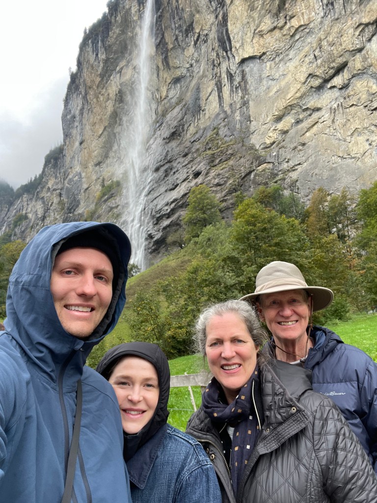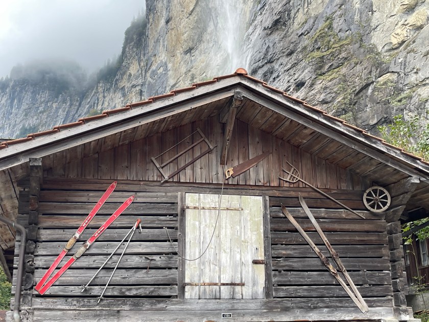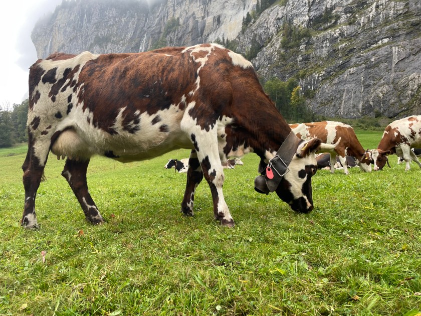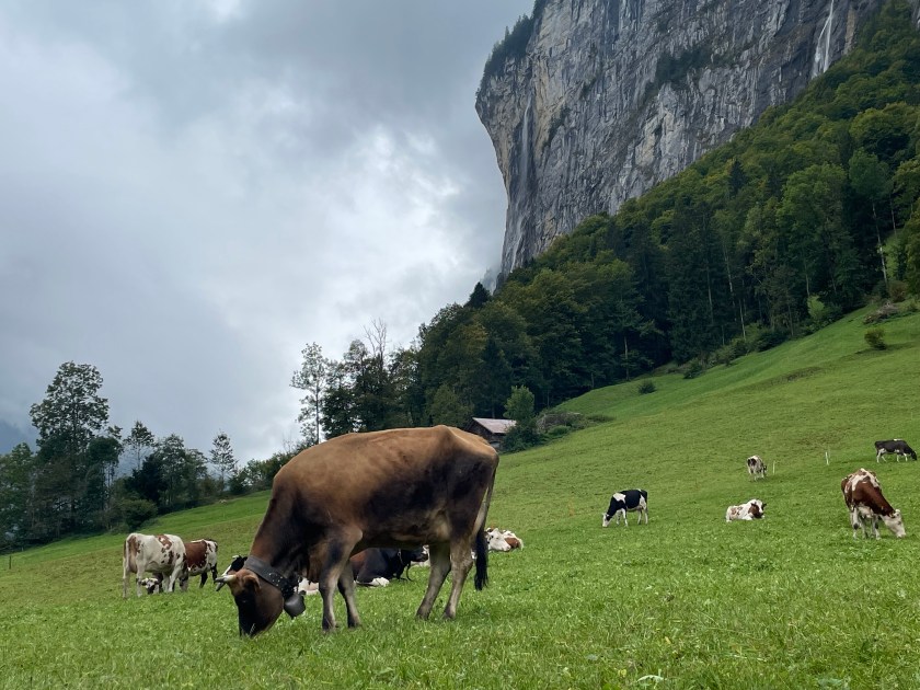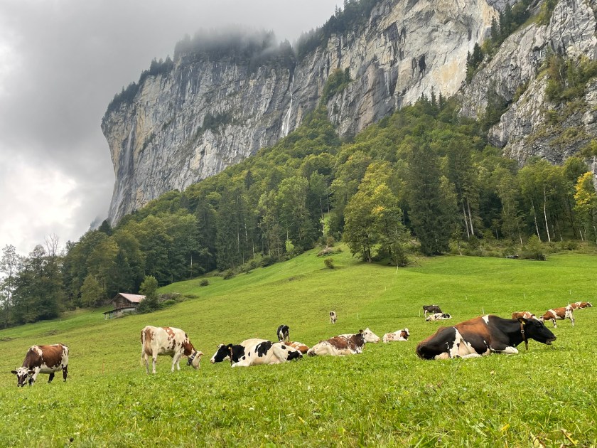 Lauterbrunnen is one of my favorite little towns. It was beautiful here today. John and the kids climbed to the caves at the bottom of the Staubbach waterfall and I went looking for cows. I learned that the farmers here are paid a stipend of $5000 for each cow. I’m guessing some of that is to provide for tourists like us. The cowbells ring throughout the valley and it’s delightful (except for the cows, who probably all have headaches).