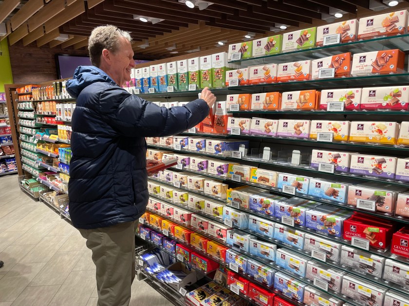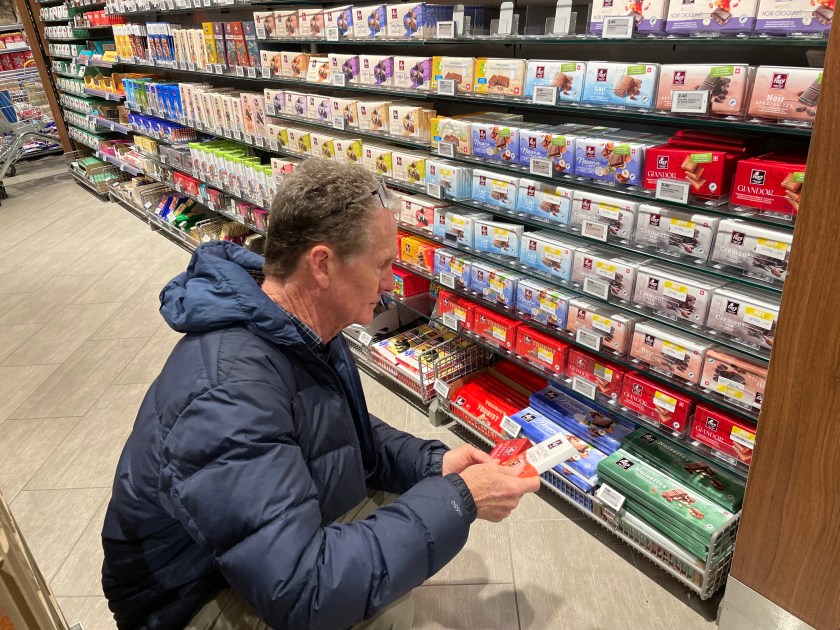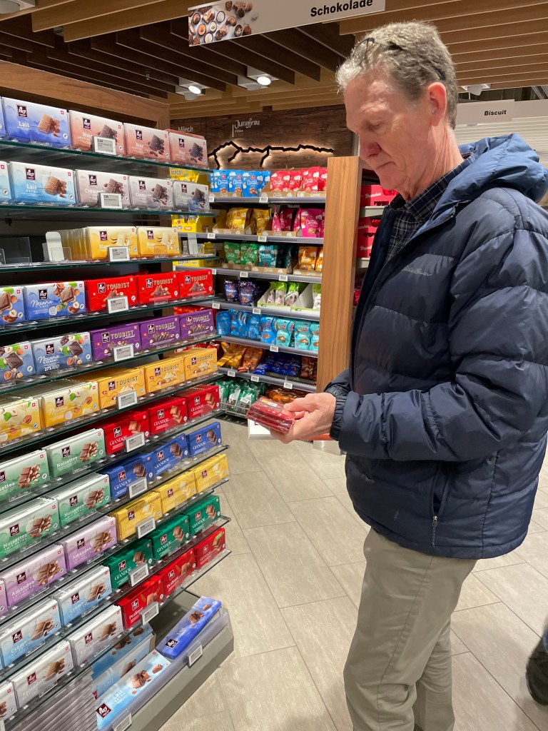 Before leaving Interlaken this morning, we made a quick run to the nearby Migros grocery store. As usual, John went to the chocolate aisles and I went to buy some produce!