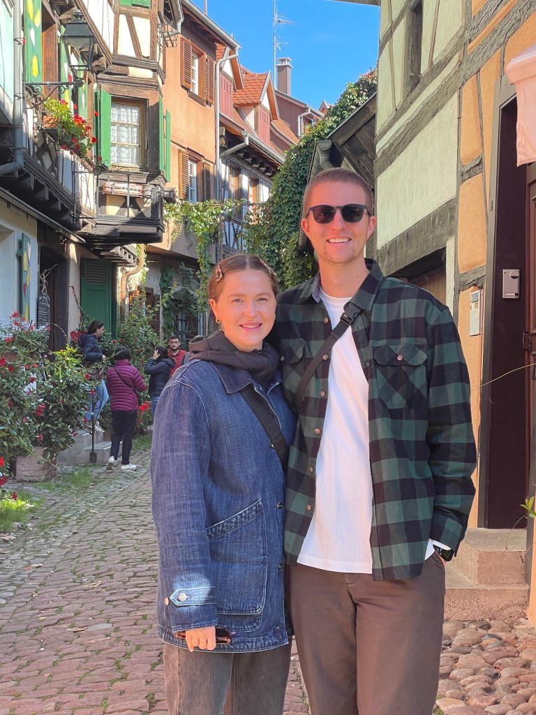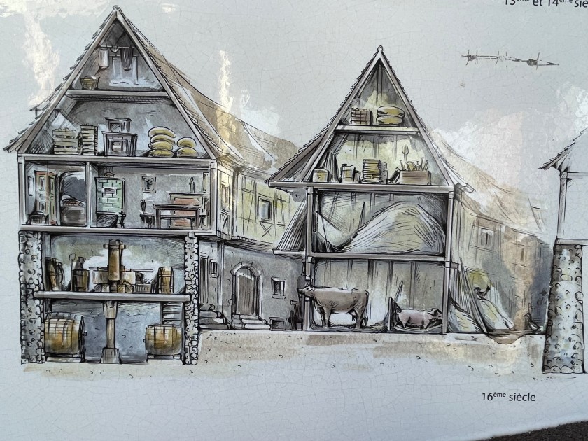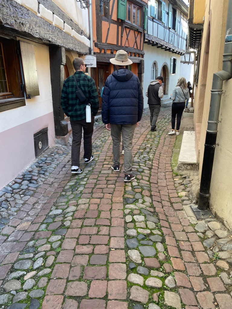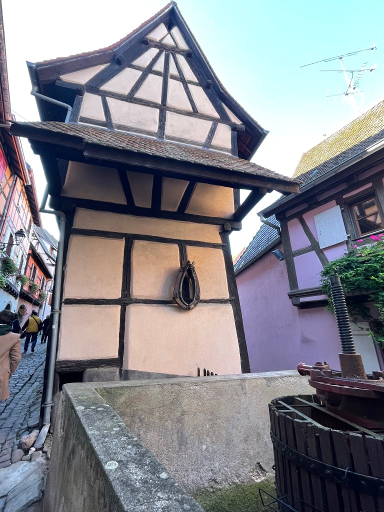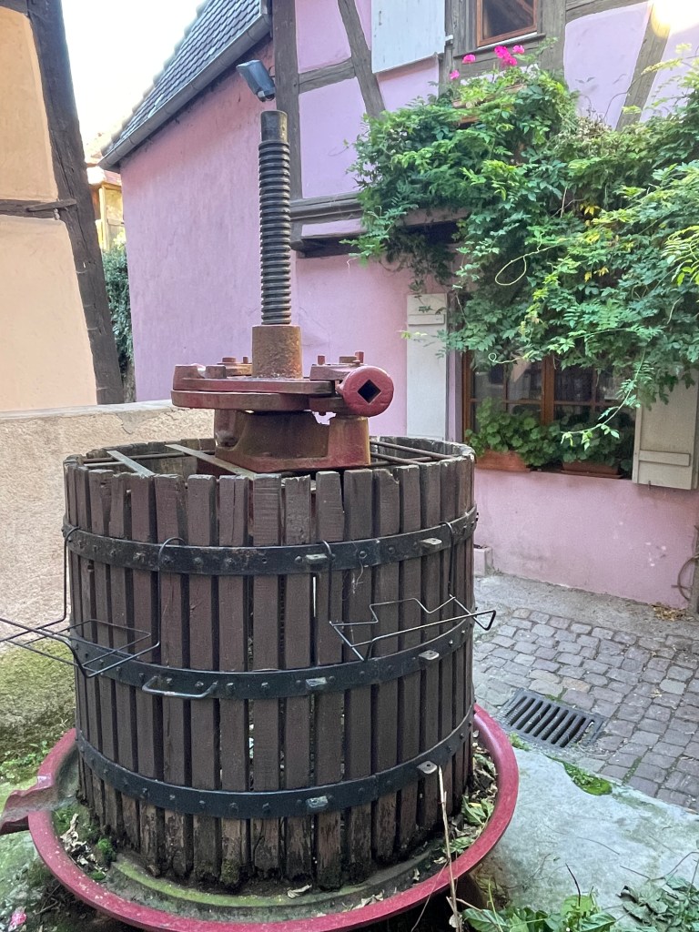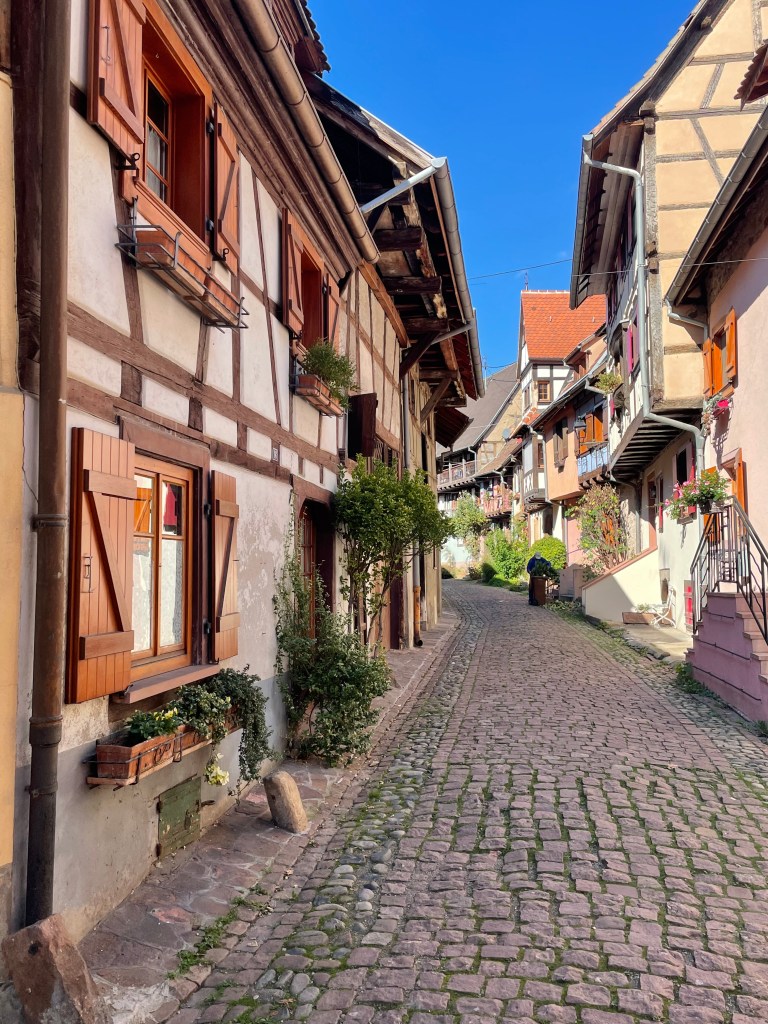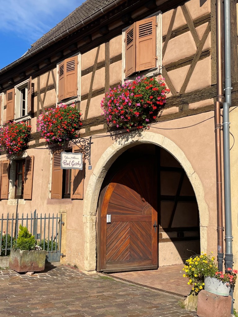 Today we drove into France to drive the Wine Route from the south end to the north. We started in Eguisheim, a town dating back to the 1500s in the shape of an oval with 2 walls, forming a double fortification. It’s a magical place we visited last year at Christmas time. It was so fun to see it this time of year with all the colorful interesting half-timber homes and flower boxes. There were lots of visitors who came to spend the day here.