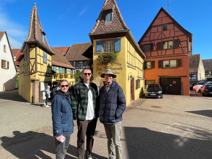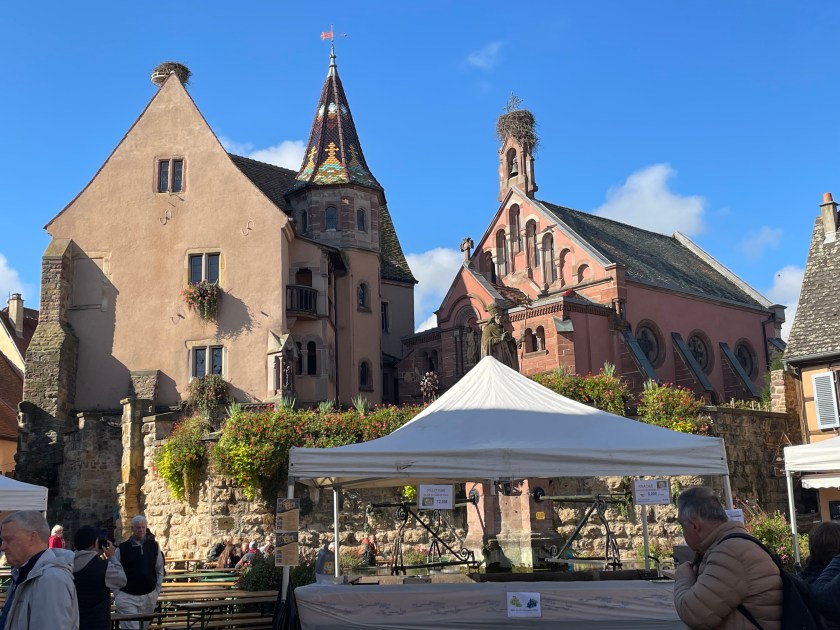 We spent about 2 hours wandering in Eguisheim, then returned to the car and drove on through the vineyards. The Wine Route (Route des Vin) is a small country road that meanders through each small town along the way. It’s scenic and each little town is interesting, with an old center and a church and old homes and farms.