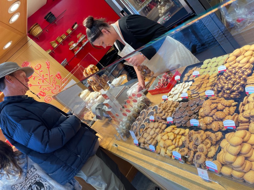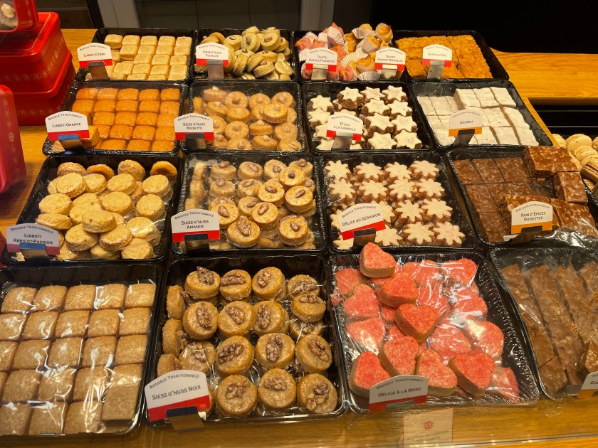 We sampled warm macaroons and fragrant cheeses from shopkeepers with trays of offerings. There was a lot of wine tasting going on. It was fun to hear the French and speak a bit with the people here.