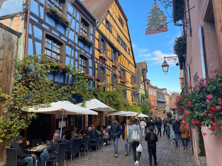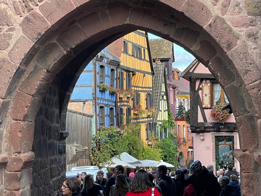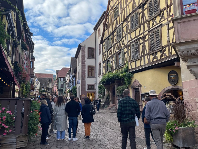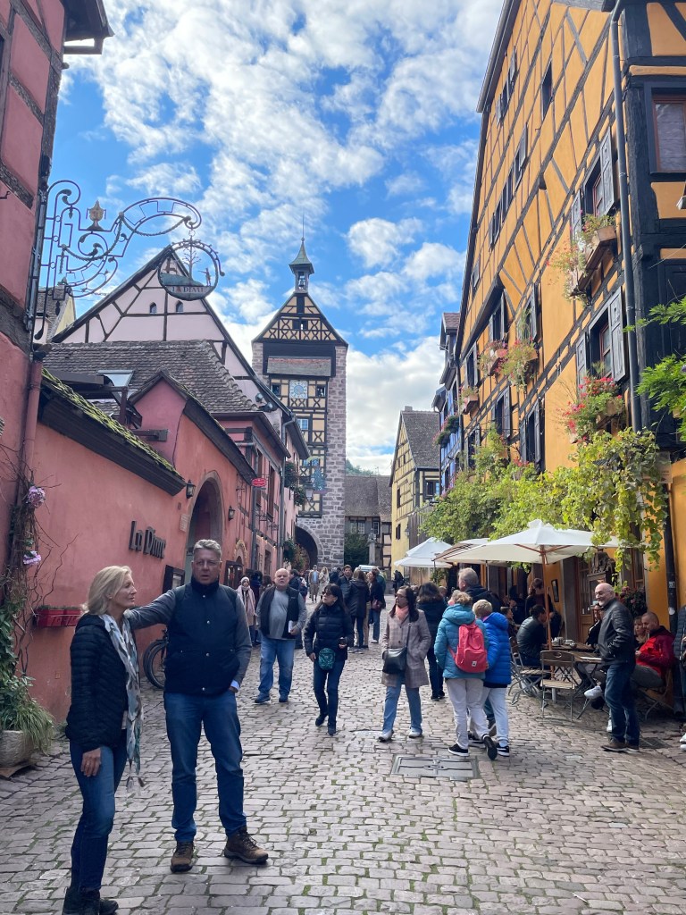Next we drove to Riquewihr, another charming small walled Medieval town. Riquewihr and nearby Ribeauvillé, roughly twice the size of Riquewihr, were sources of inspiration for the Disney team. Ribeauvillé is a short 10-minute drive north of Riquewihr and is bordered by three cliffside castles. These charming French towns are filled with the fairytale charm for which the Alsace region is known.