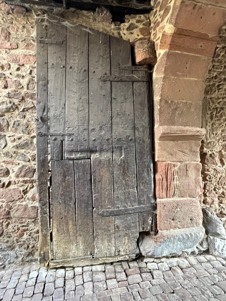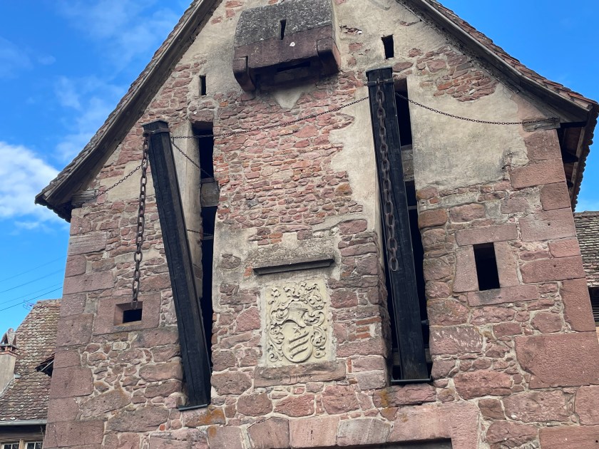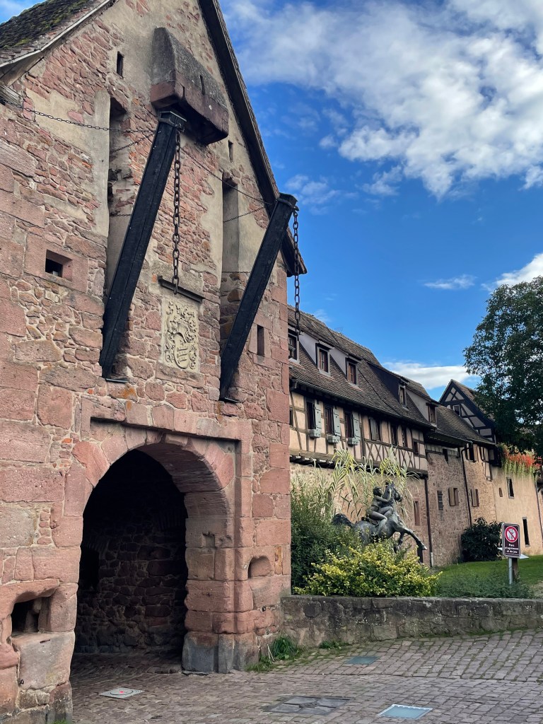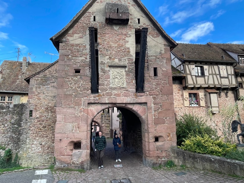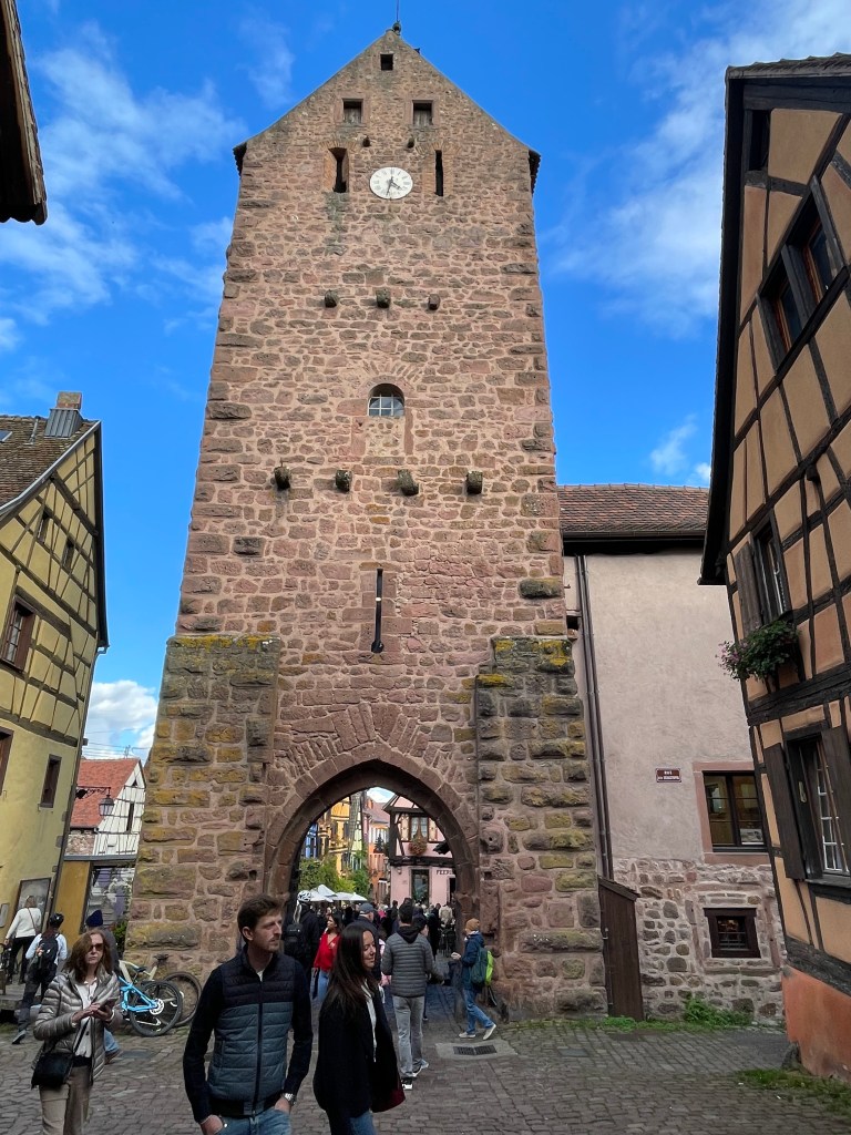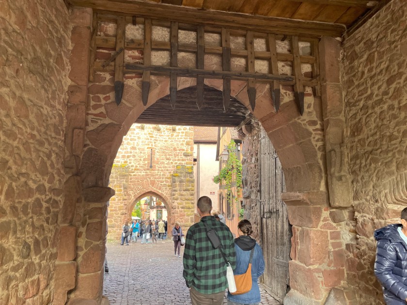 Entering Riquewihr from the parking area, you go through these city gates on the old cobblestone road.