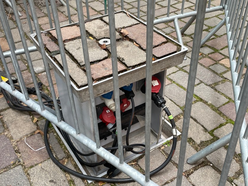 Today I noticed this electrical box under the pavement and I learned something new. This must be how they get power to all the booths in a Christmas Market!