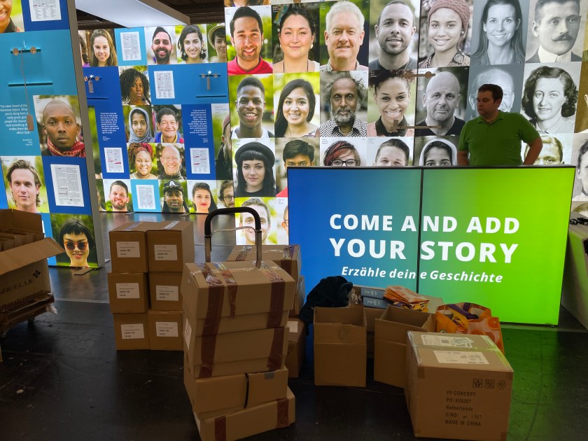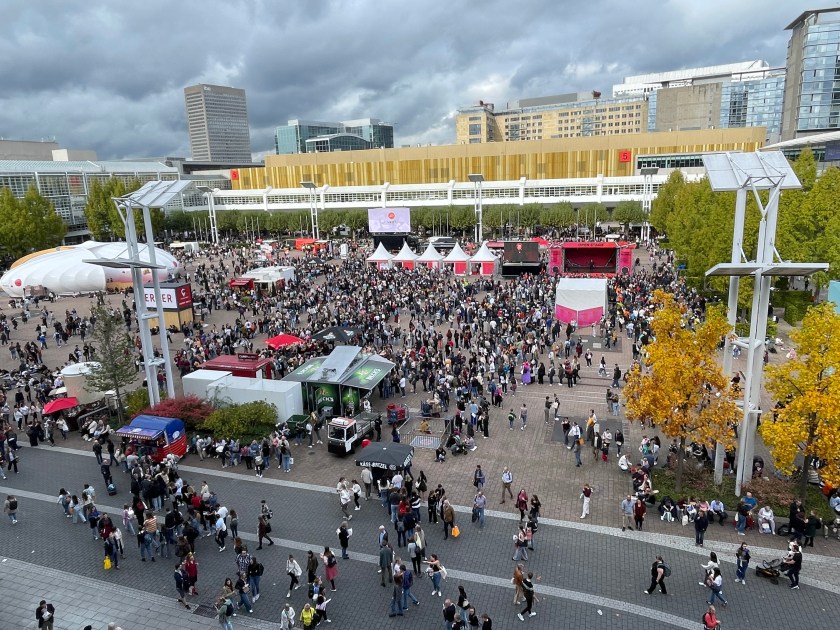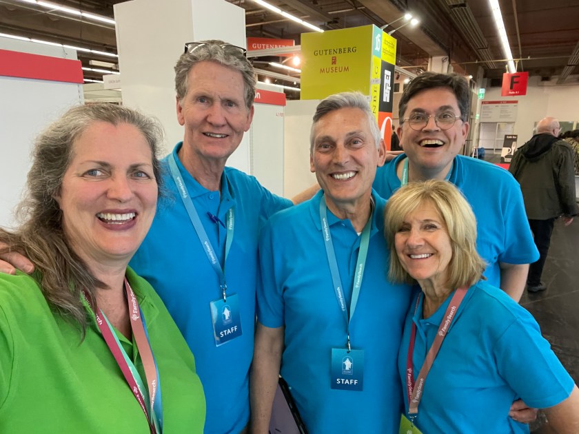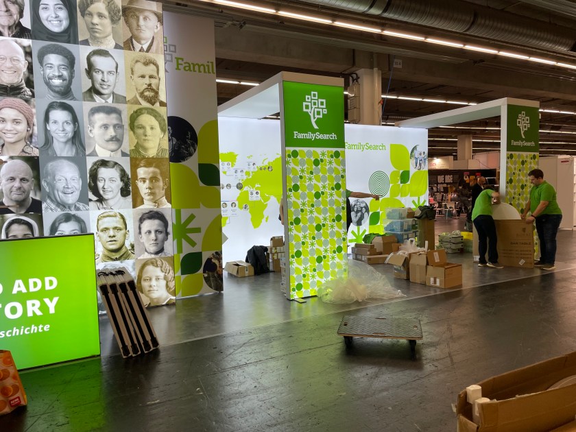 We were thrilled to participate in the Frankfurt Book Fair again this year. This book fair is the largest in the world, with thousands and thousands of visitors. Our booth this year had two sides, one for The Book of Mormon Experiment, and one for FamilySearch. We spent 3 days at the Book Fair, helping. John assisted with the Book of Mormon Experiment, and I helped with FamilySearch.