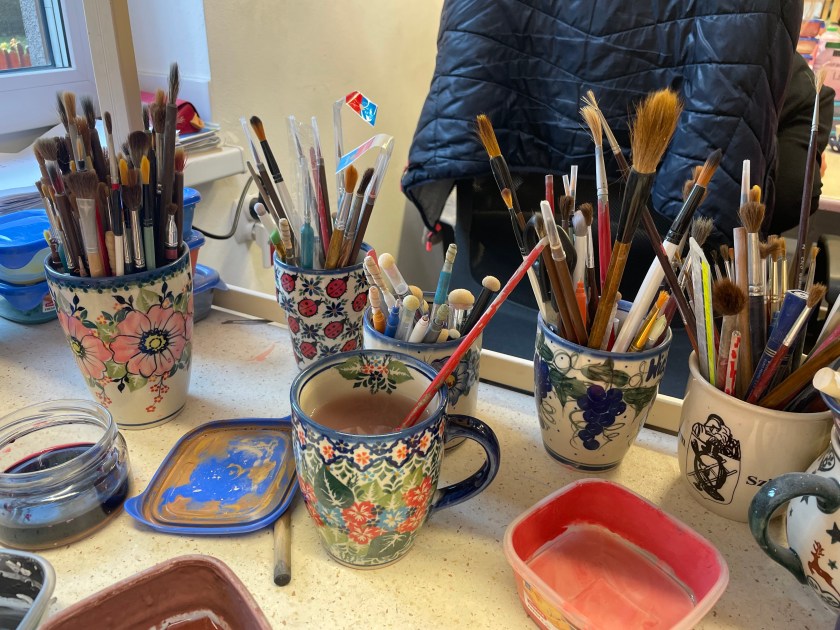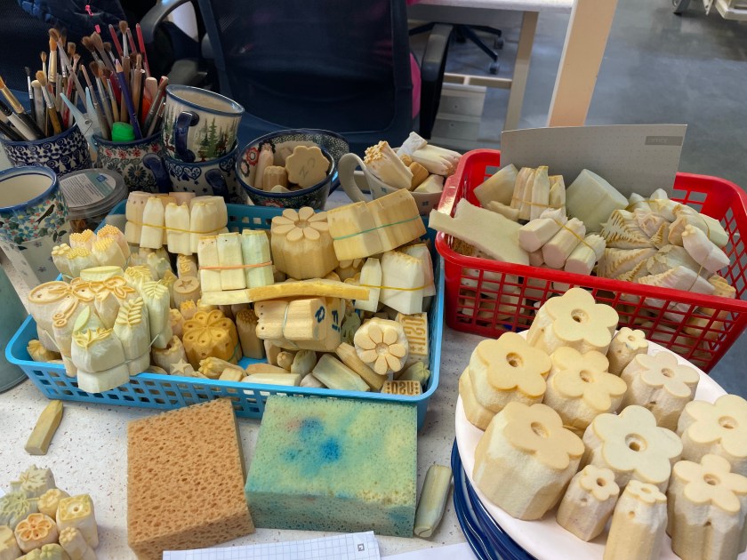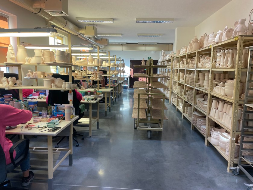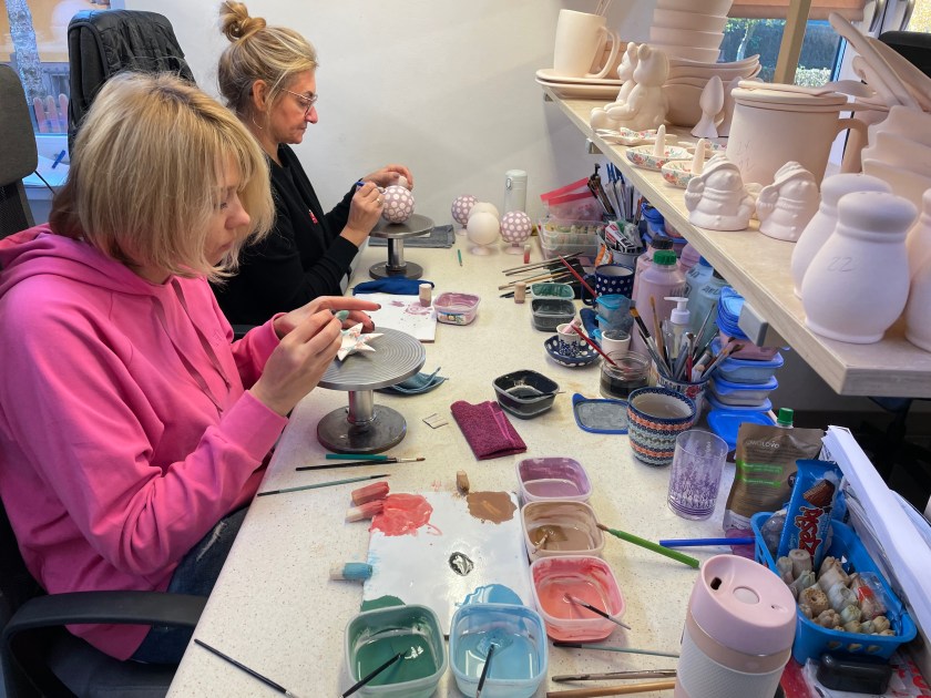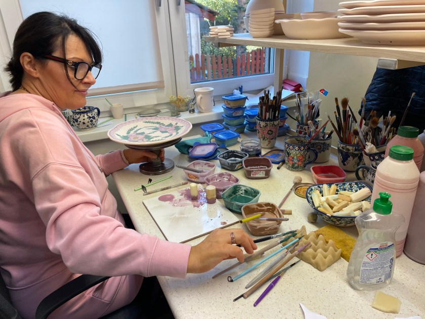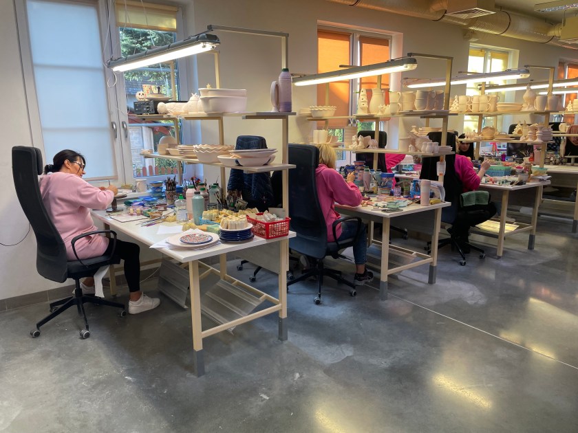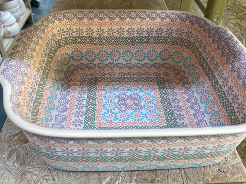 Watching this work and seeing these tools was fascinating and it helped us all appreciate the work that goes into each piece. The prices we paid here in Boleslawiec were about a third to a half less than you’d pay at a shop outside of Poland. There are busloads of people who come here to purchase the pottery, much of it for resale.