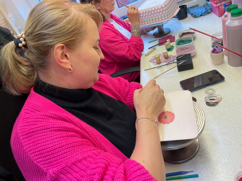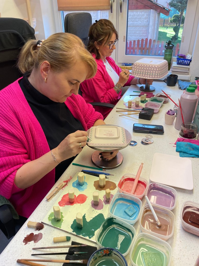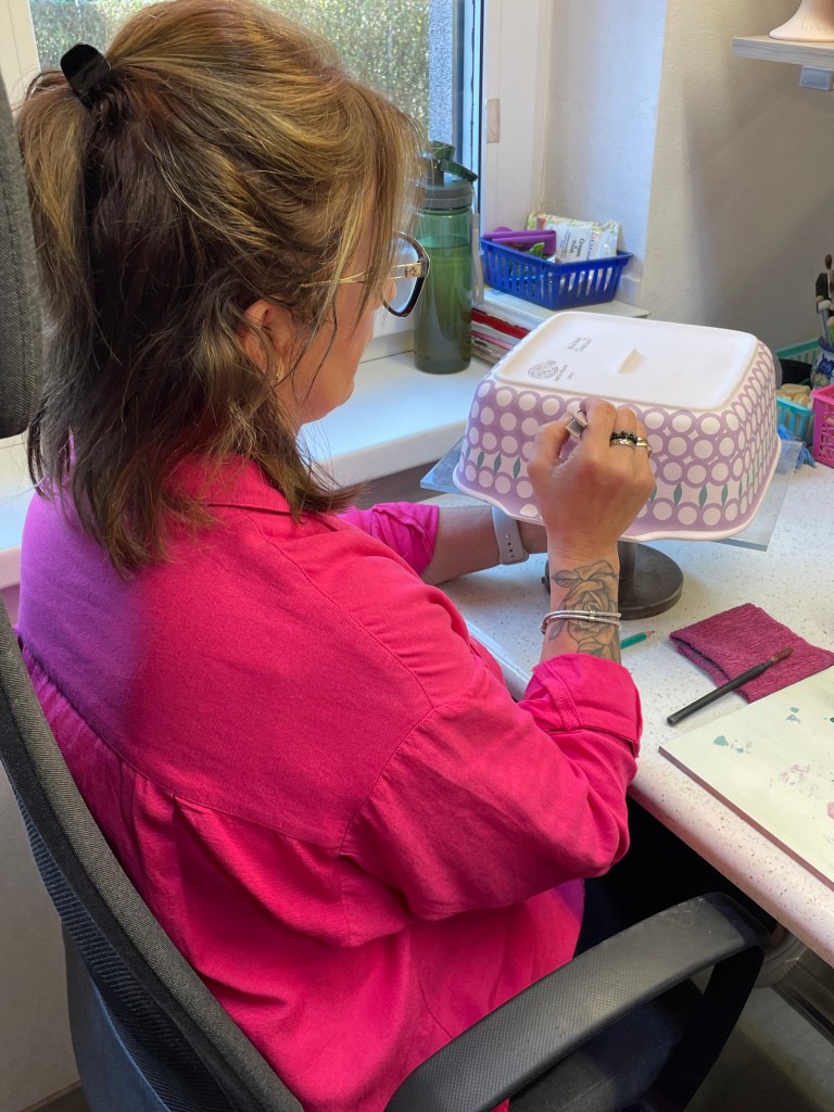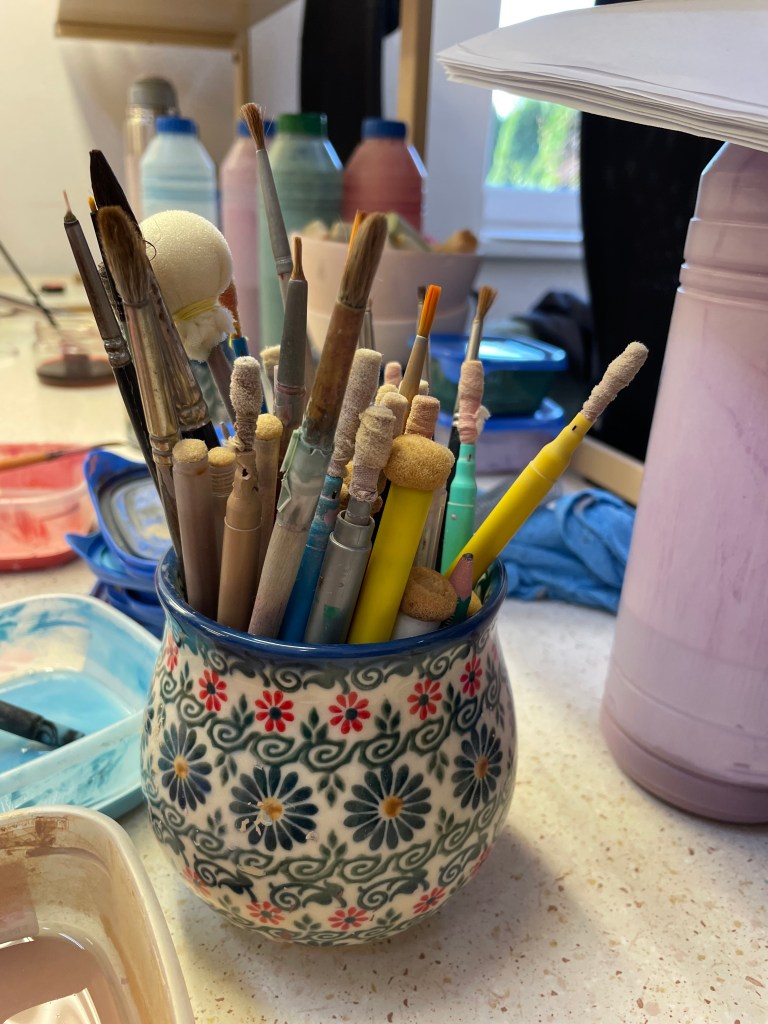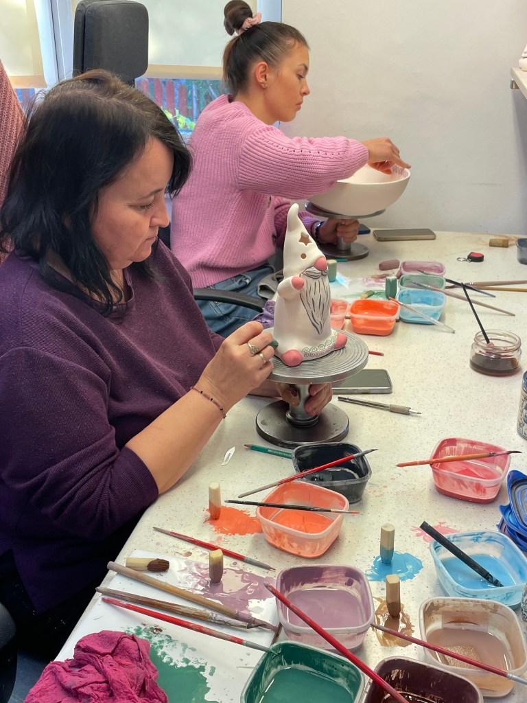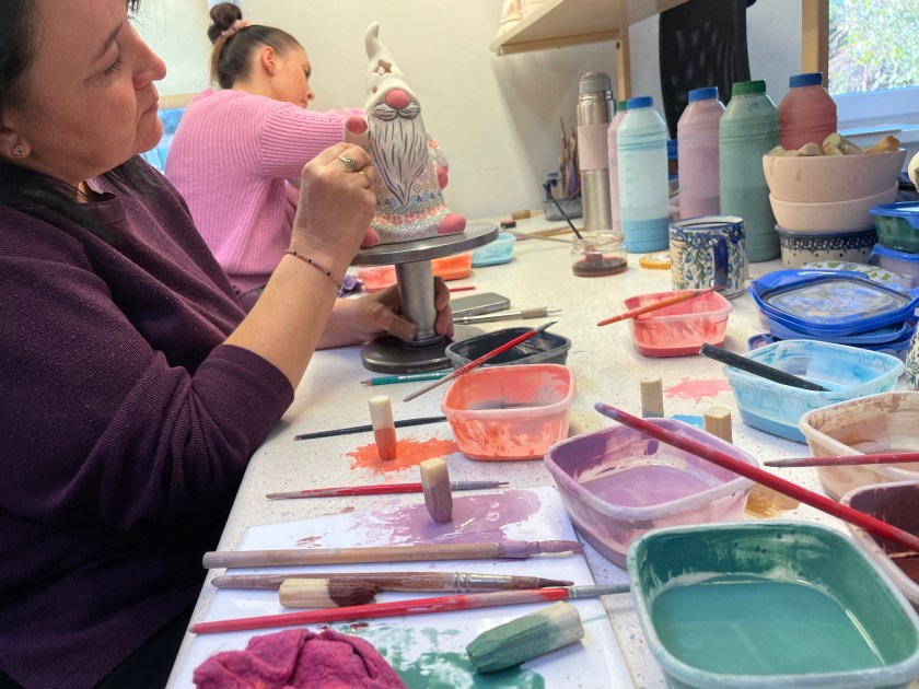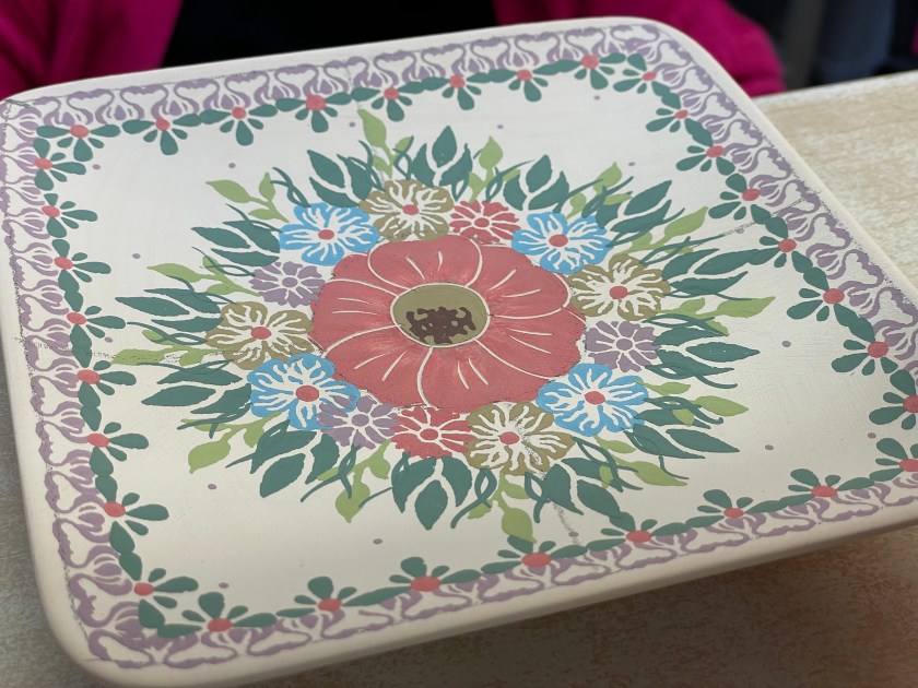 It was interesting to see how pastel the paints are. After the pottery is fired, the colors become dark and vibrant.