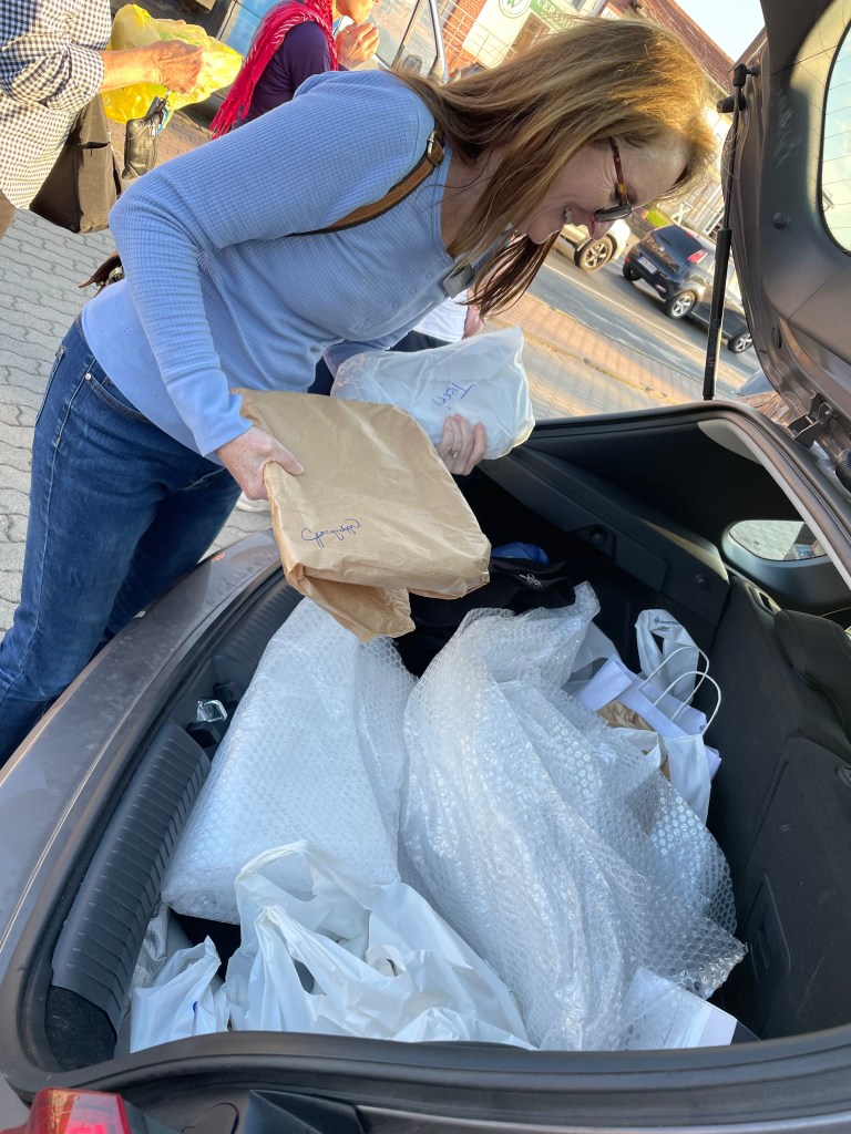 Jean Claude brought a Sharpie marker so we could label our bags as we made our purchases. We quickly filled up the car trunks!