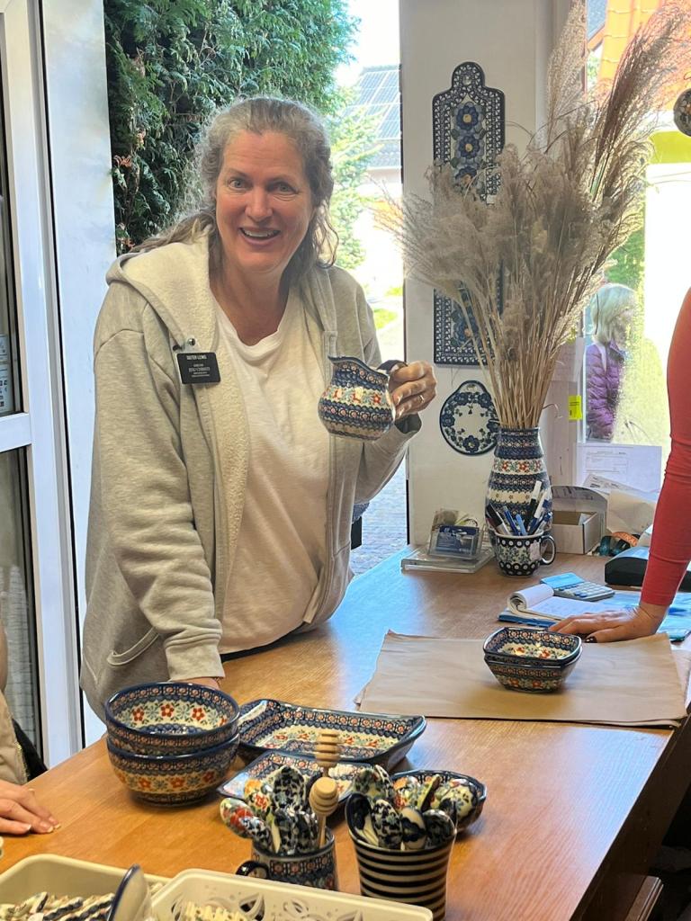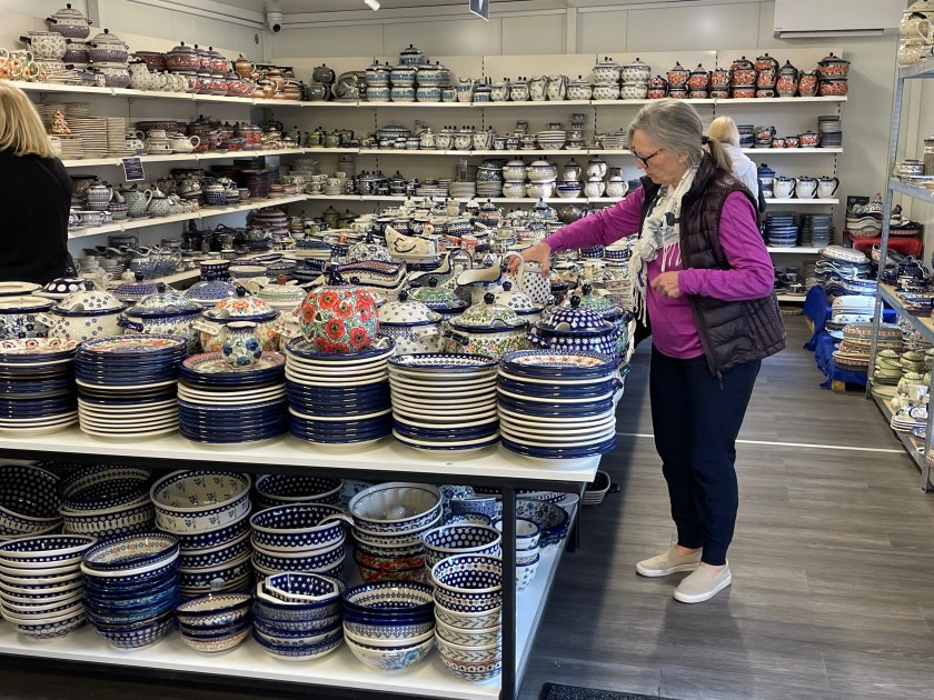 Several weeks ago, I met Carol Van Tonder, a delightful gal, who loves Polish Pottery and sells some out of her home. As we visited, she told me about trips she used to take with Sister Missionaries and friends, traveling 5-6 hours to Poland to visit the outlet stores there. It sounded wonderful. When I asked if she’d consider doing that again, her eyes lit up. We decided to plan an outing!