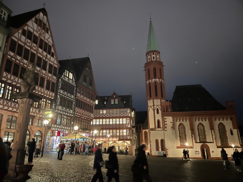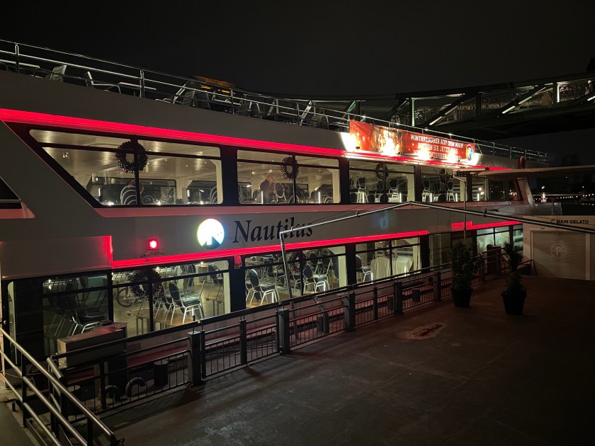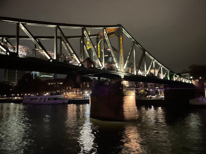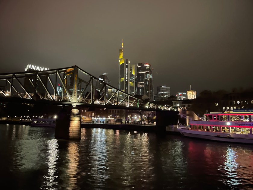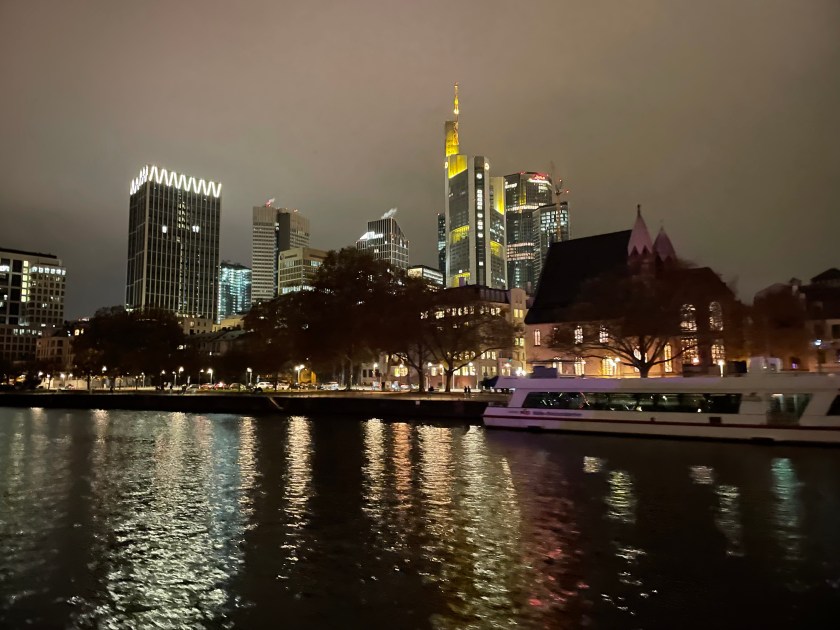 This evening we all went to downtown Frankfurt to enjoy a dinner cruise on the Main River. Frankfurt is beautiful at night.