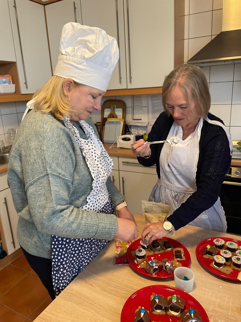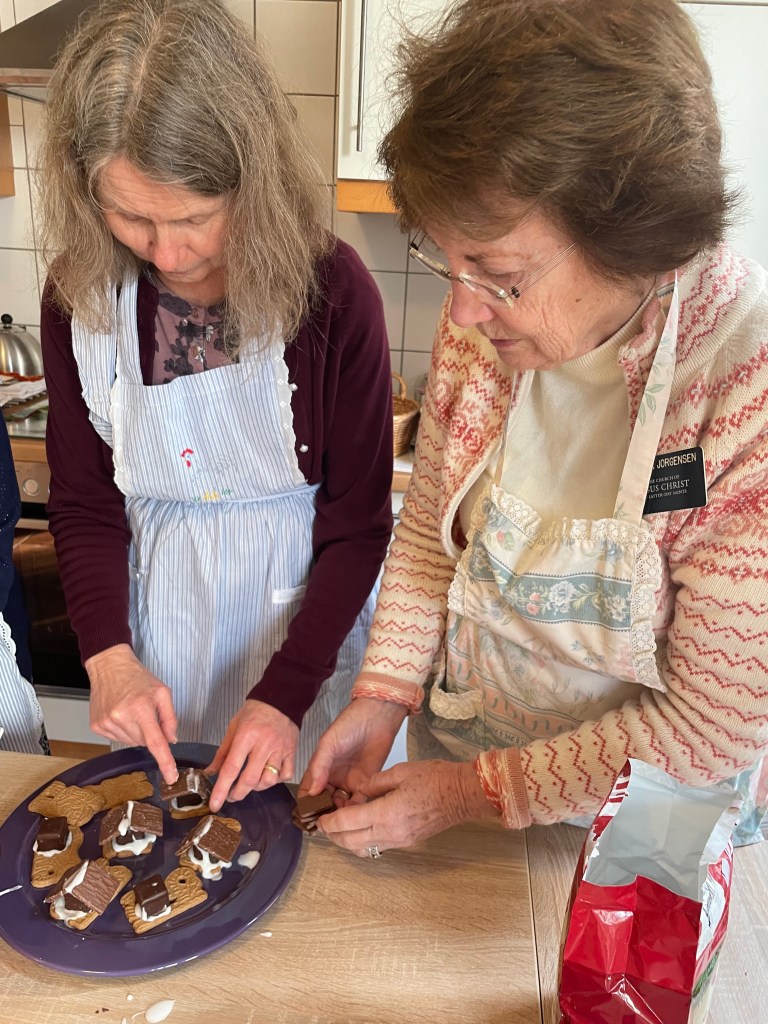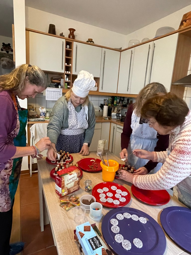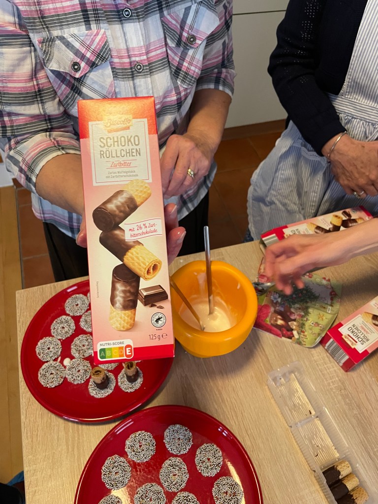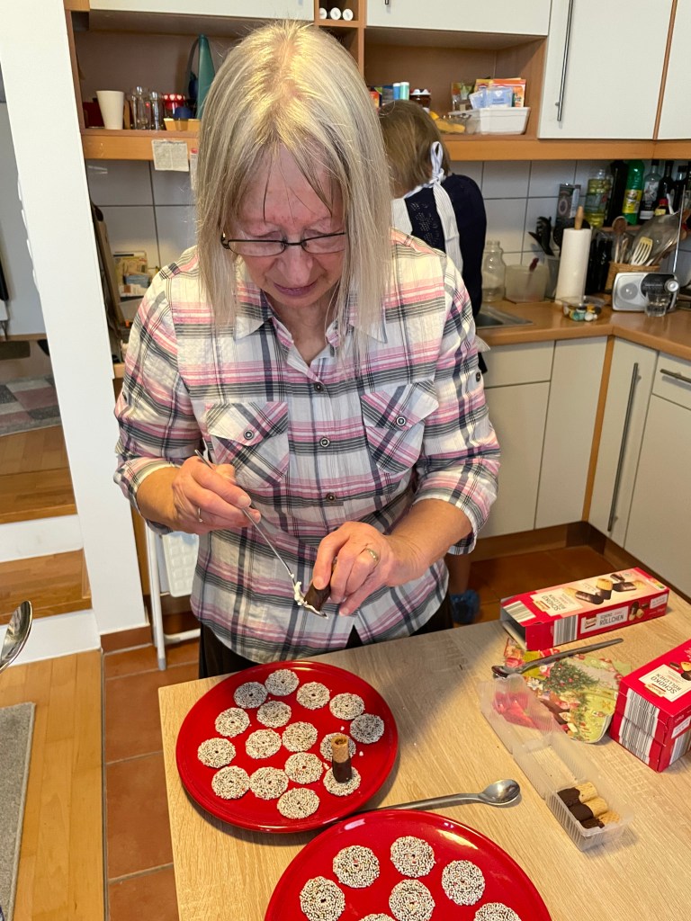 We just love visiting Erika Enger, our German teacher. Our classes are like an oasis in our week of office hours and long days. Today we learned more about Christmas in Germany and we made some little treat favors to take to friends and neighbors when we go caroling with Erika in a few days.