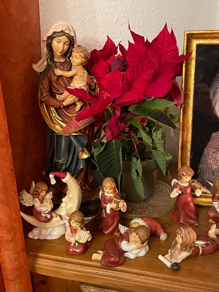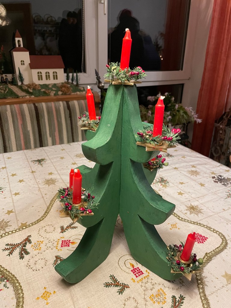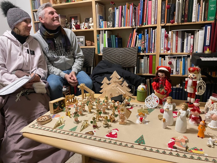 While singing to people in Erika’s neighborhood, we were invited into the home of a kind gentleman, now in his 90s. His wife died since we sang here last year. He stood in tears, as he listened to our carols, then invited us in to his apartment. It was like stepping into a cozy German cottage in the woods. He had the most interesting German decorations filled with memories of his loved ones. This invitation to step into his world was his gift to us.