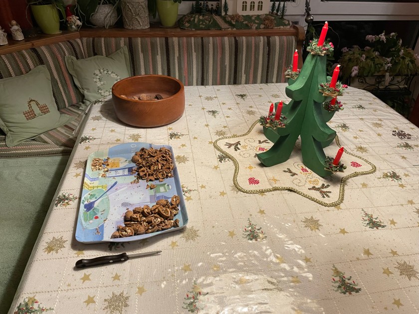 Stepping into his apartment was like stepping into a German cottage in the woods. It was lovely. He clearly loved and missed his wife, especially at this time of the year. We could see her influence in the beautiful old-world decorations.