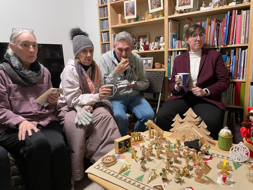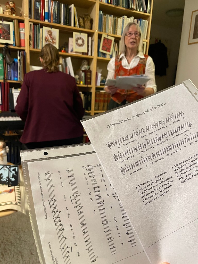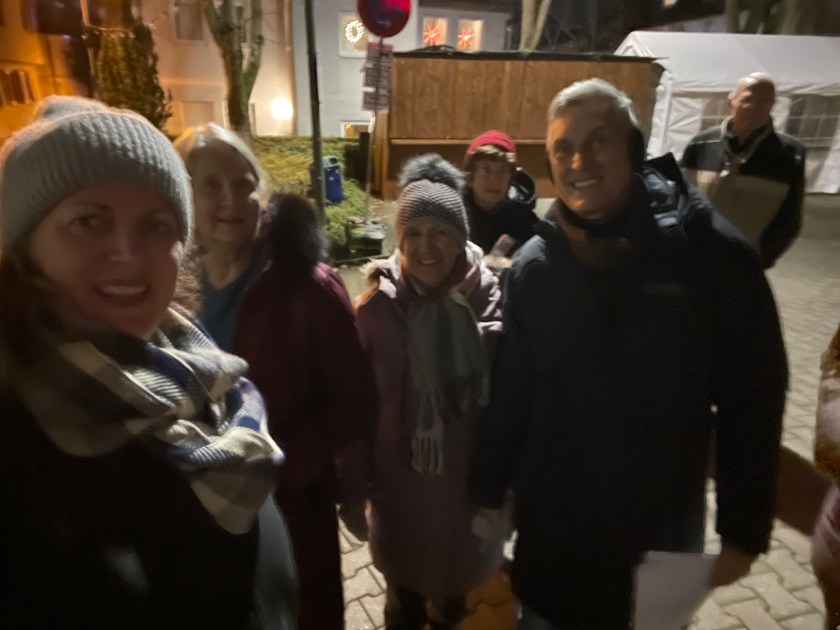 This evening we met at Erika’s home to practice singing a few carols in German, then we went out to spread some Christmas spirit.