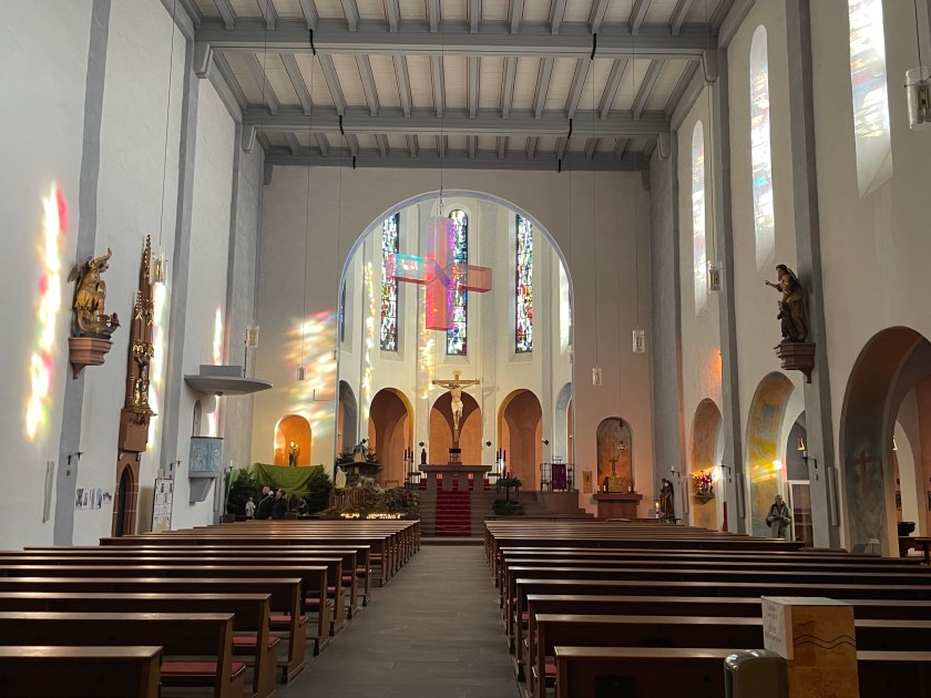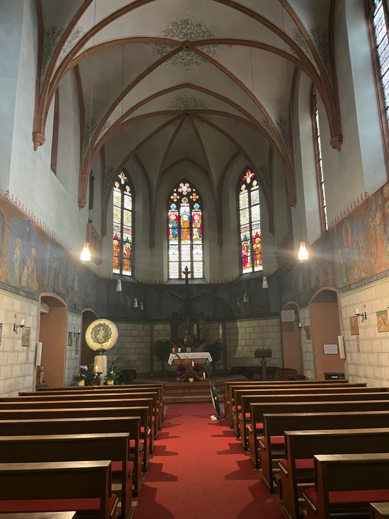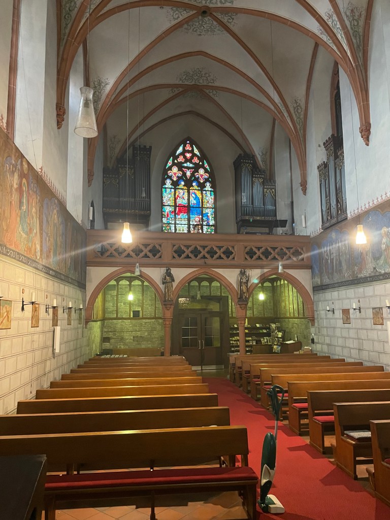 On our way out of town, we drove to a Kloster and church about 10 min up in the hills. We’d heard about it. We found an old church and some old buildings near, quiet and no one in sight. The church had a modern huge open-air seating area behind it. Looks like they do conventions here. There was also a large hotel near by. There was nothing else in the area. It was a nice place to end our morning.