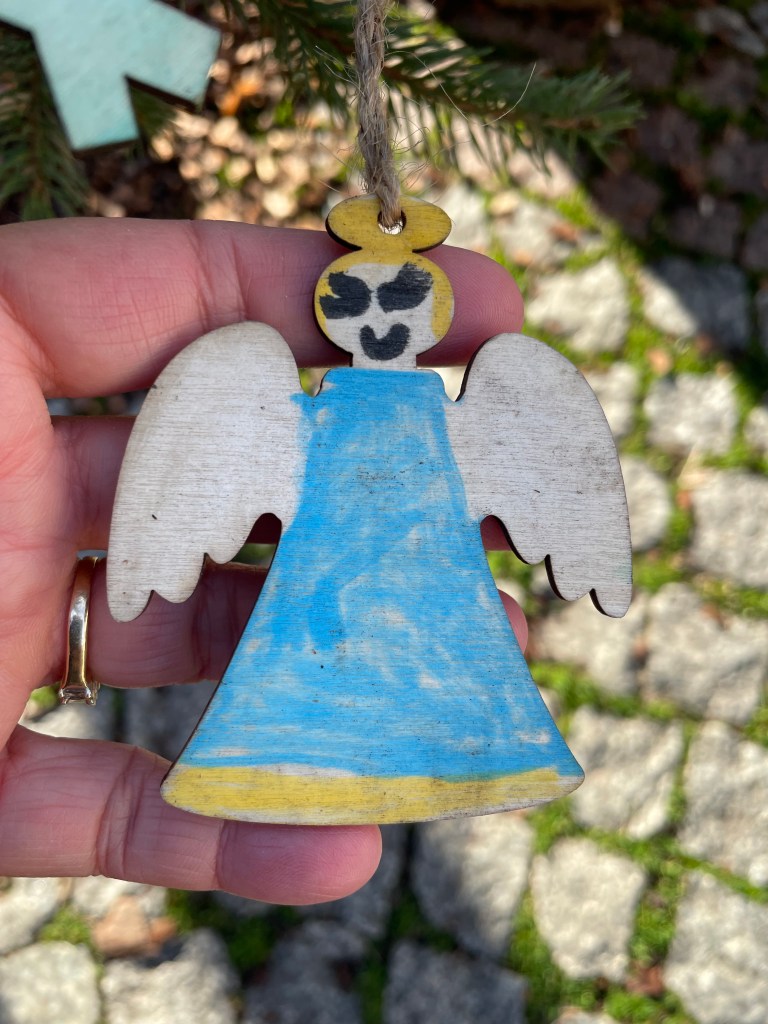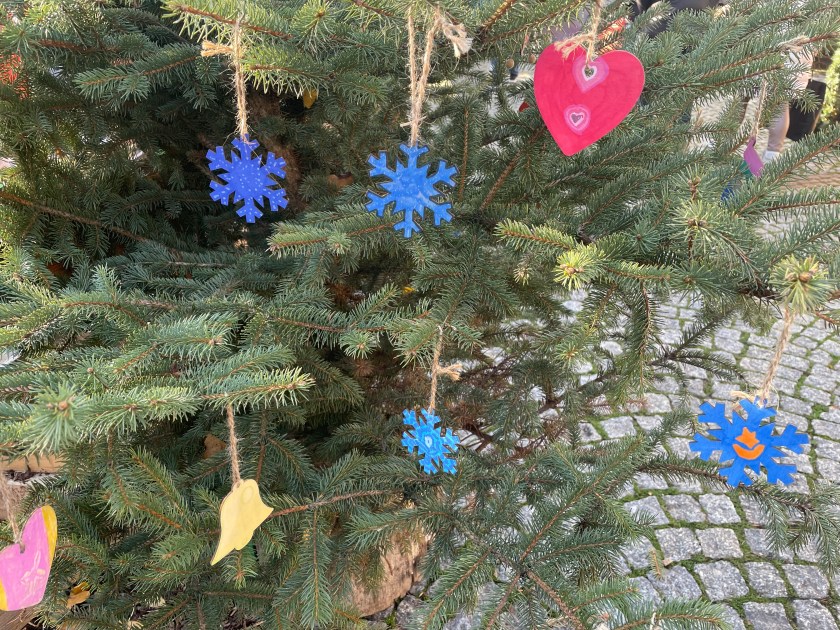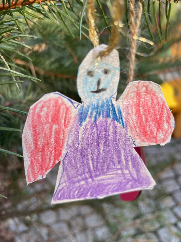 I love it in the small local markets when school classes decorate the trees decorating the streets. I especially loved these angel faces:
