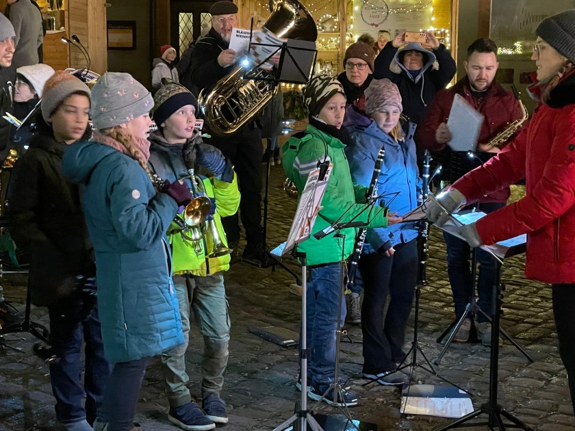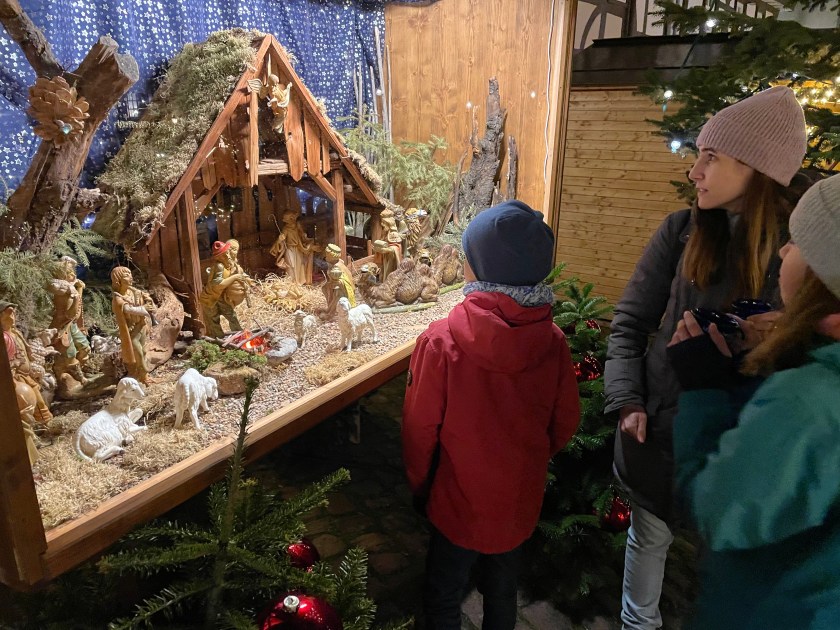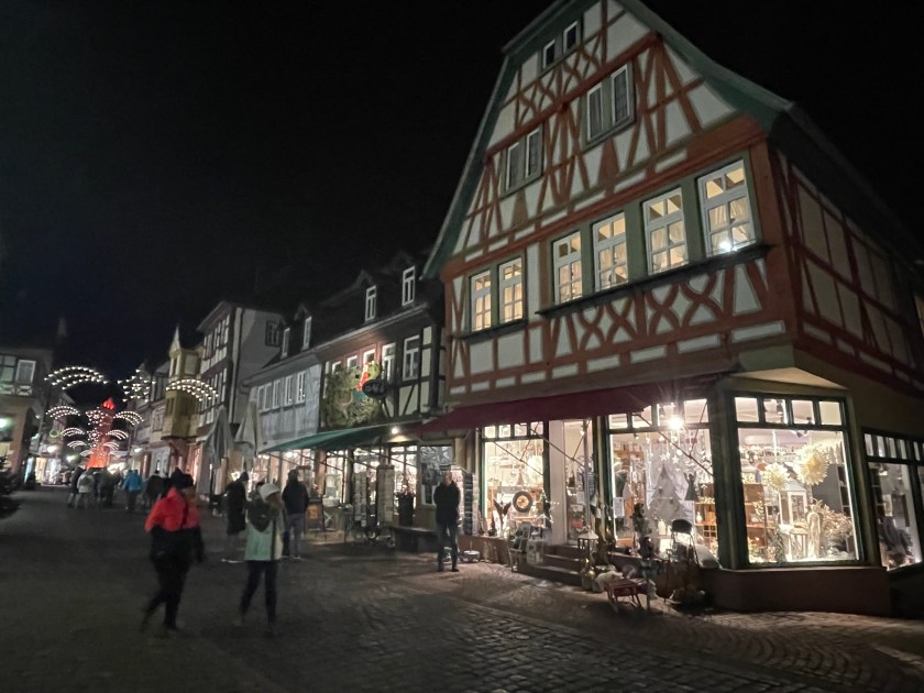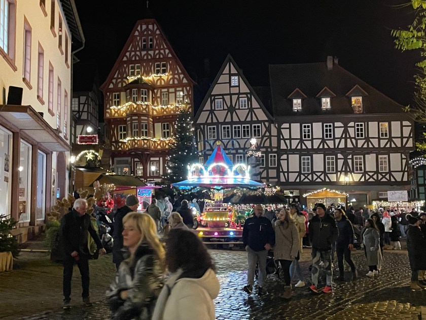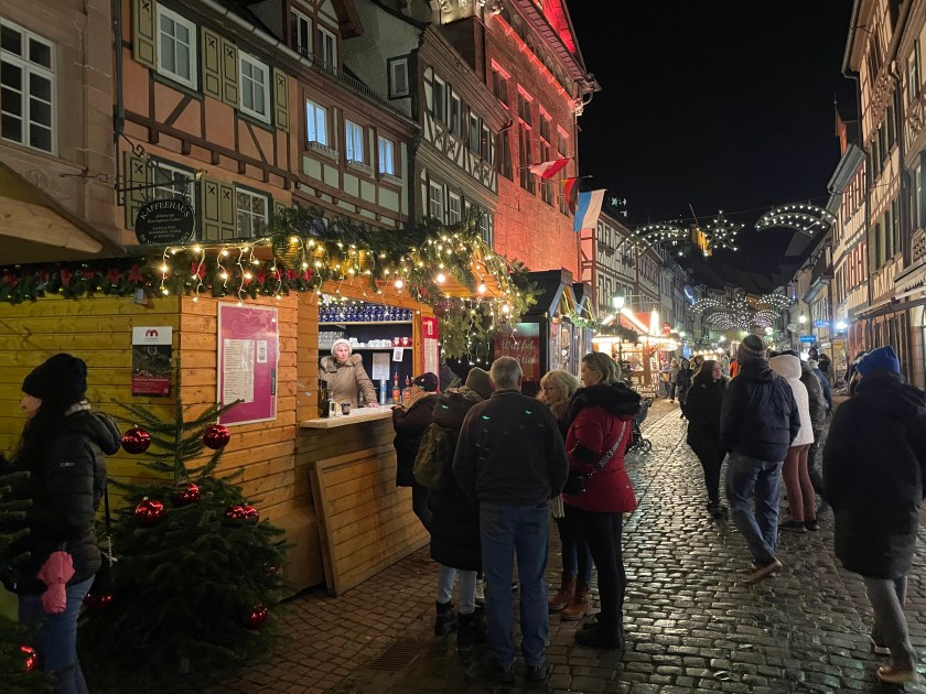 Miltenberg is another small town along the river, about 30 minutes from our last stop in Wertheim. The highlight here was being in the square for the welcoming of the Christkind and the opening of the market. There was a small local group of musicians, young and old, playing Christmas carols in the small square. There we stood, surrounded by old historic half-timber homes and shops, looking up at castle ruins on the mountain behind us, listening to angelic music in Germany. It was perfect.