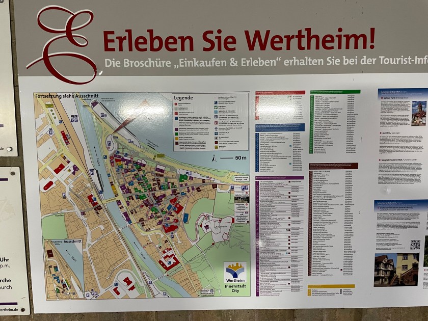 Wertheim is a small town on the Main River by the confluence of the Tauber. We visited there last spring and loved it. The town stretches along the river (and has flooded many times). It’s basically one long main street full of fun shops and CMS Market stalls in the town squares.