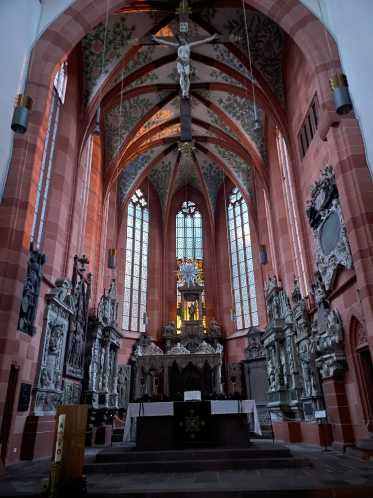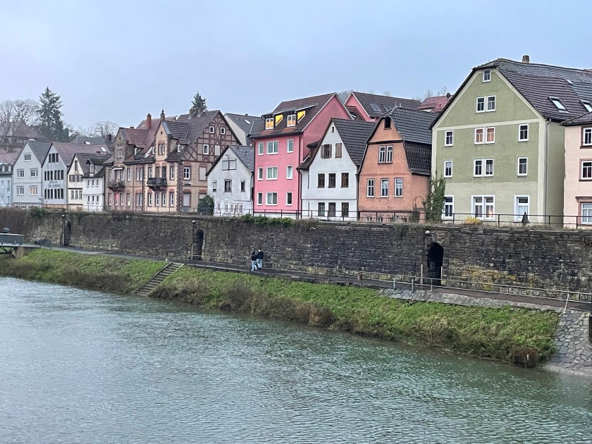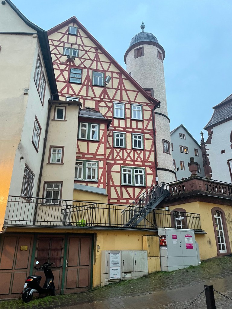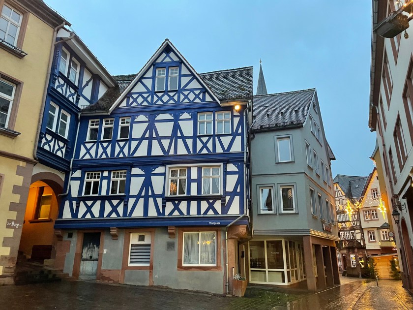 The “Blue House” built in 1593 is one of the half-timbered houses in Wertheim’s old town. “Smalt” was used for the blue color in the framework. Smalt is a glass with cobalt in it. When finely grated, makes a pigment. It’s a very expensive process that would have showcased a landlord’s wealth. It was beautiful!