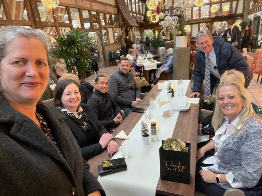 Today we were treated to lunch by the physical facilities team, as a thank you for all our work helping with the new apartments these last many months. Ivonne was excited to share a traditional German Christmas meal with us: roast goose. This meal is being served in restaurants and homes all over Germany right now, and will be the traditional meal served on Christmas Day. Many people schedule their restaurant goose meals a year in advance.