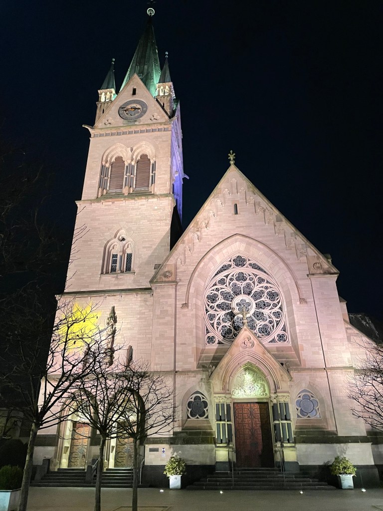 We circled back to see the 2 big churches lit up at night at the end of our evening.