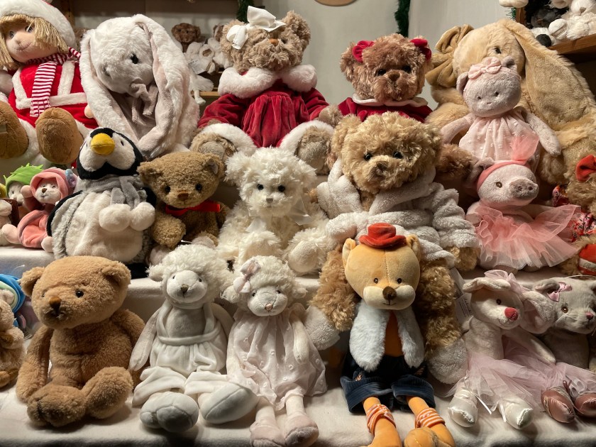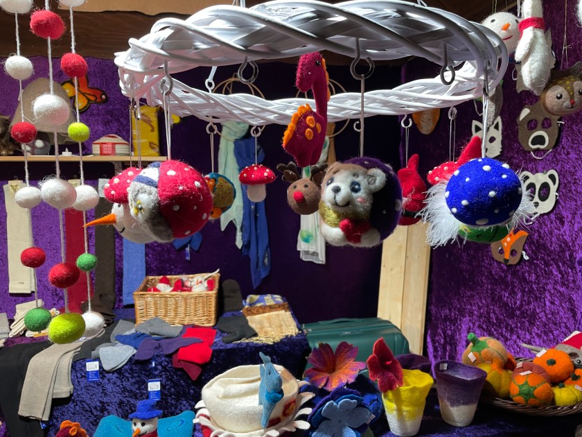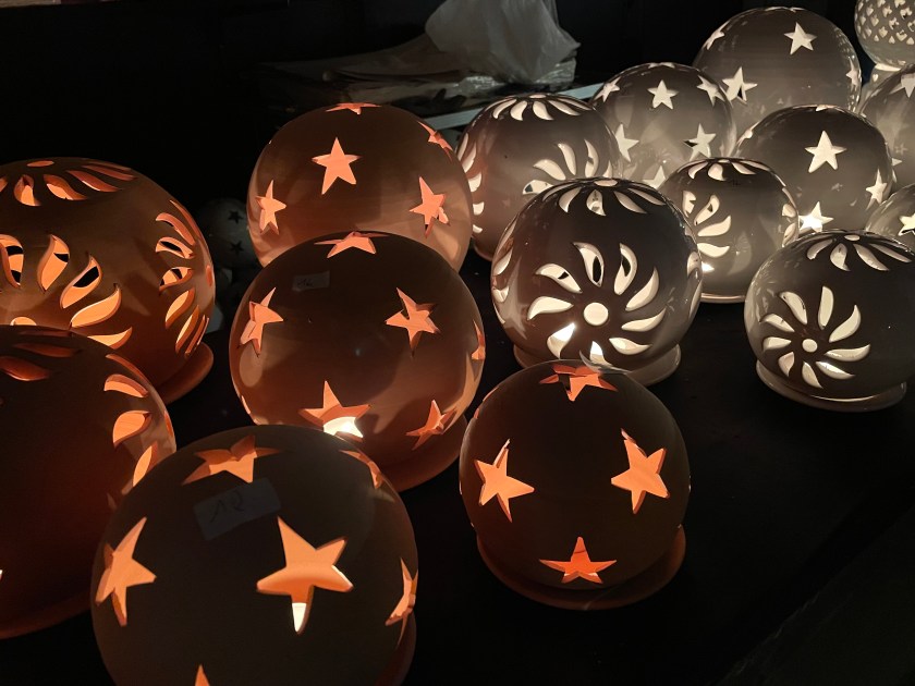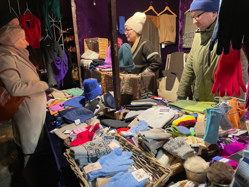Gloves, caps and scarves are very popular in the shops here. It’s cold!!