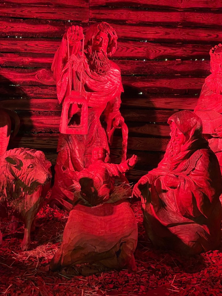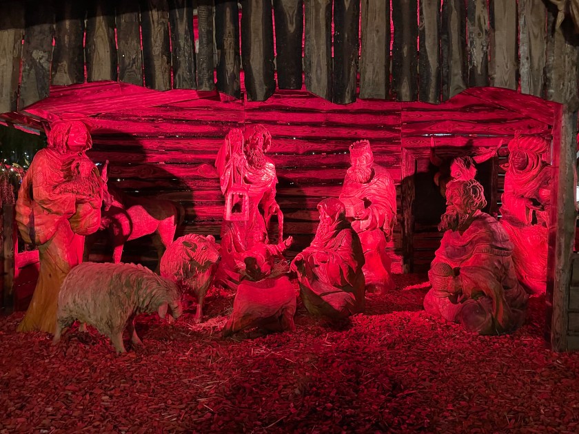 At one of the plazas, we found the life-sized Nativity. My favorite part was the ox looking through the window in the manger.