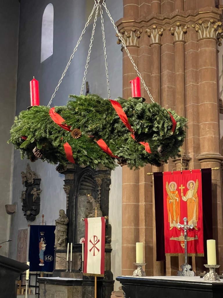 What a beautiful Advent Wreath! Each Sunday a new candle is lit during the 4 weeks of Advent leading up to Christmas.