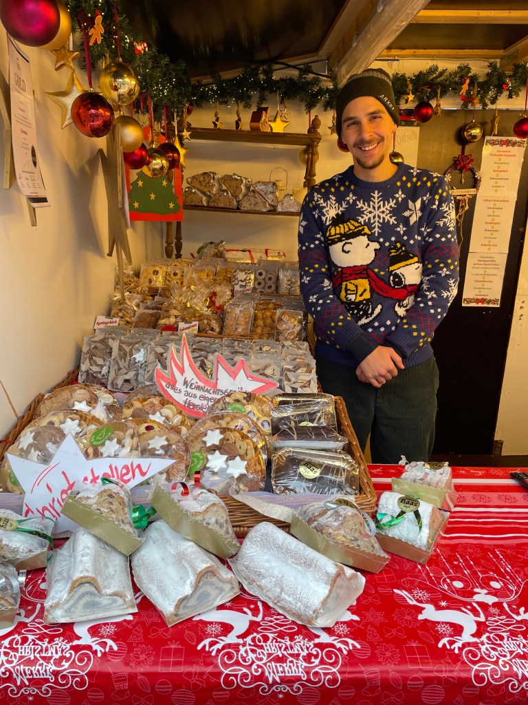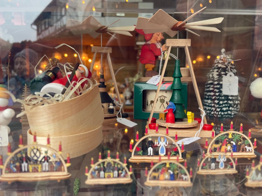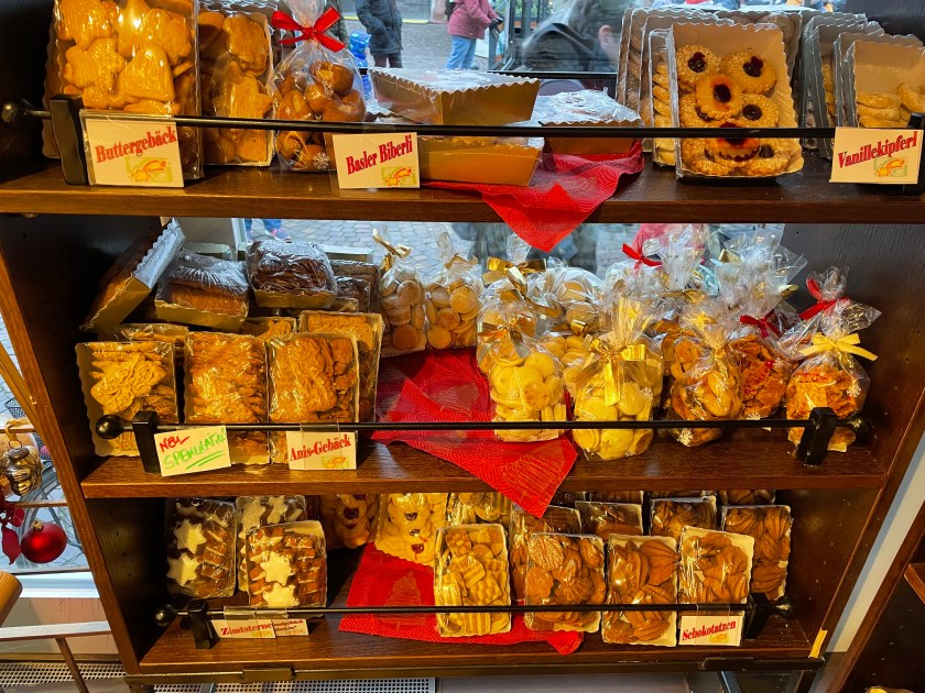 Seligenstadt (blessed city) is a friendly community, with cute local shops and vendors and ladies who baked their own cookies to sell. It was delightful. We enjoyed looking at each shop, watching people making special foods, and seeing lots of people from the town out enjoying the festivities. In addition to the market stalls, the local stores were also festive and open for business. I purchased a Spaetzle maker and some star cookie cutters at a wonderful kitchen store.