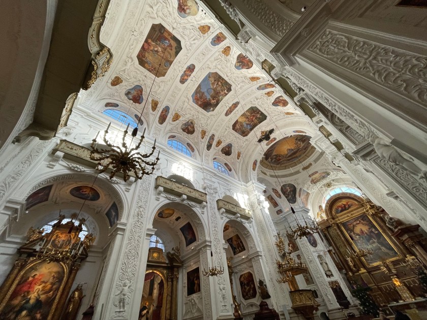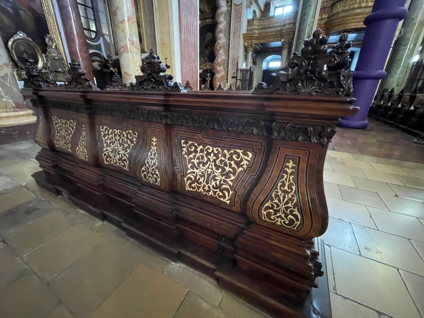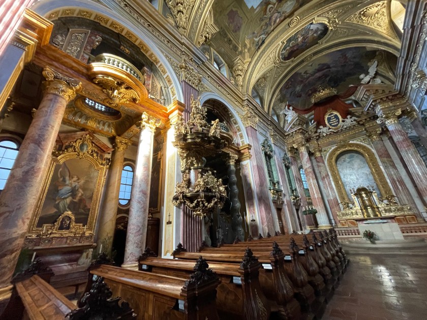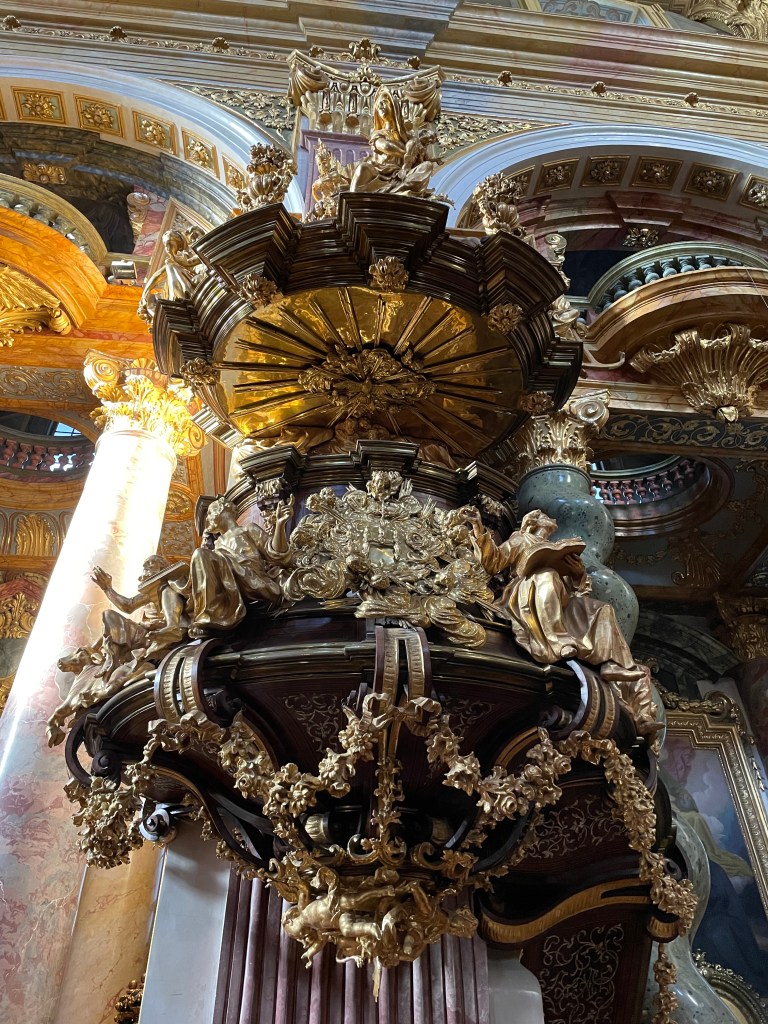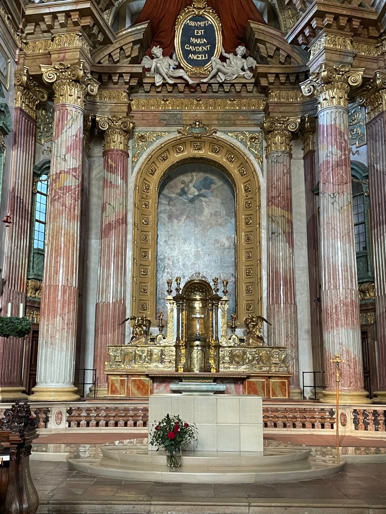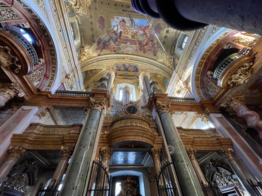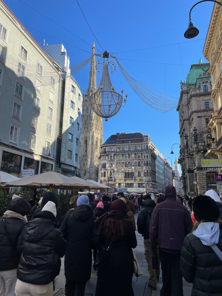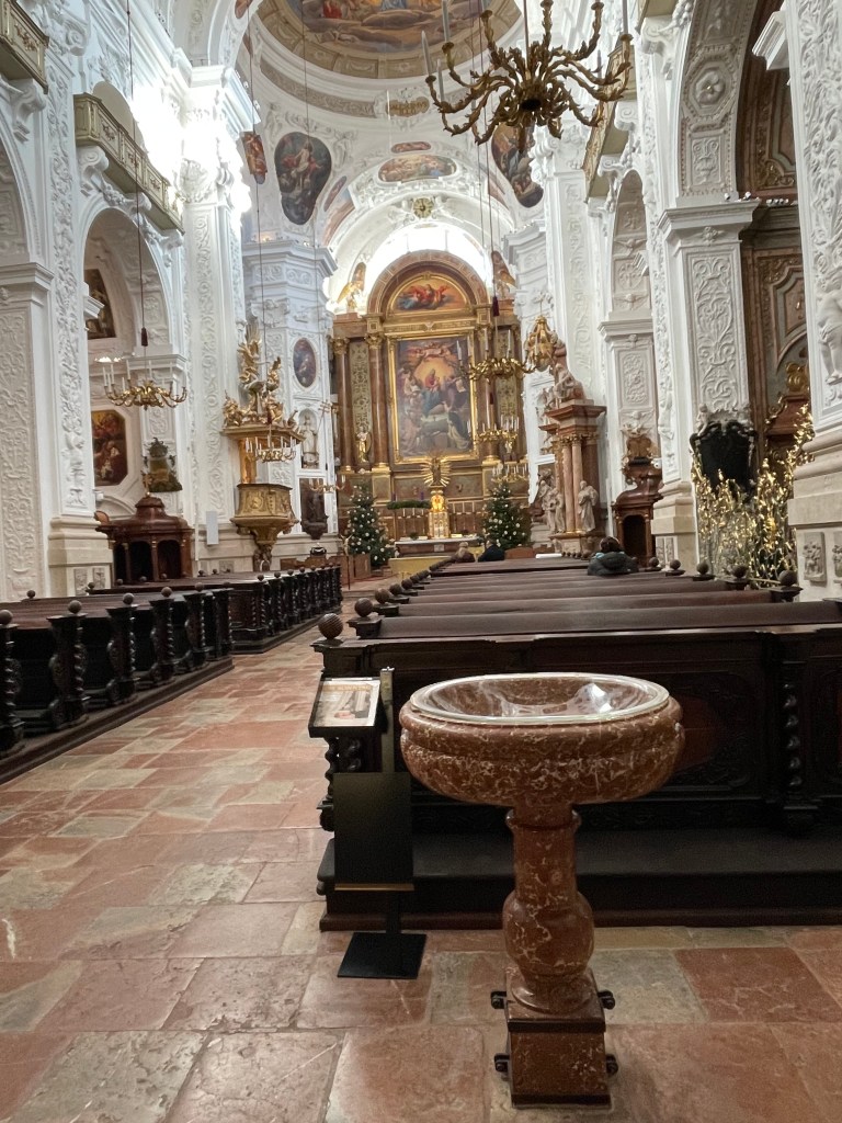 After the Opera House, we learned about Sacher Cakes, the Albertina, the Hofburg (former principal imperial palace of the Habsburg dynasty in Austria, originally built in the 13th C), Emperor Franz Josef I and his wife, Elisabeth (Sisi), the Spanish Lipizzaner stallions, the very expensive Kohlmarkt (where we saw the house where Chopin lived in 1830-1831) and Graben, the statue memorializing the plague, and the Stefansdom exterior.