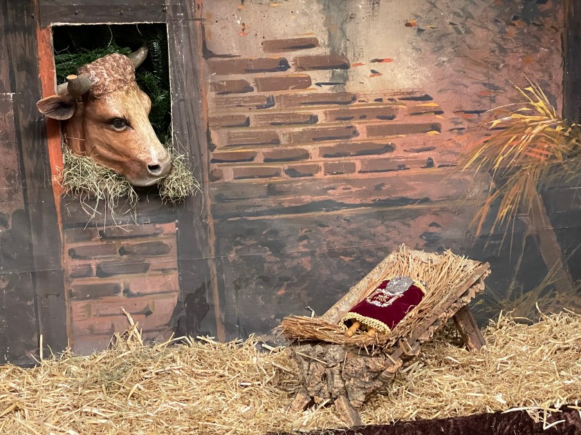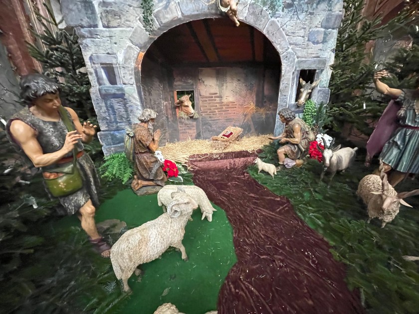 Often in these church Nativities, the Christ Child doesn’t appear until Christmas Eve.