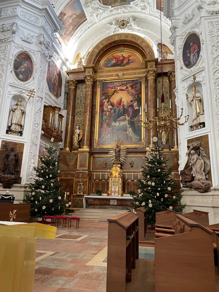 Summer is a good time to visit the gardens. Christmastime is a good time to visit the churches. I love the fresh greenery and the smell of pine in these churches as we celebrate Christ’s birth.