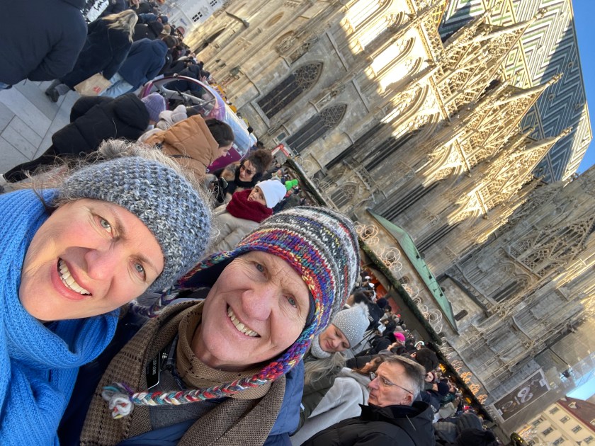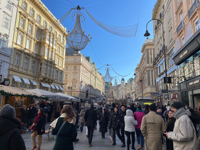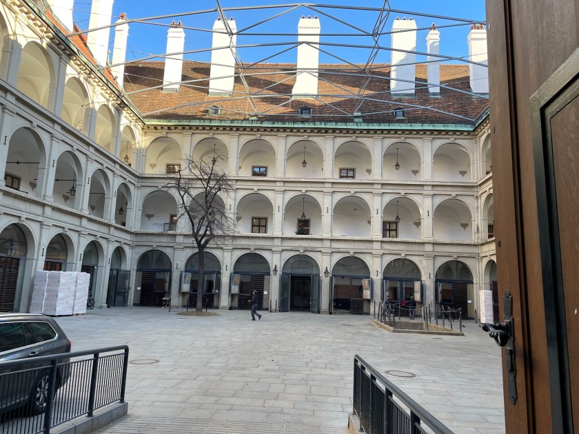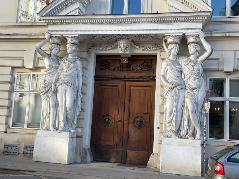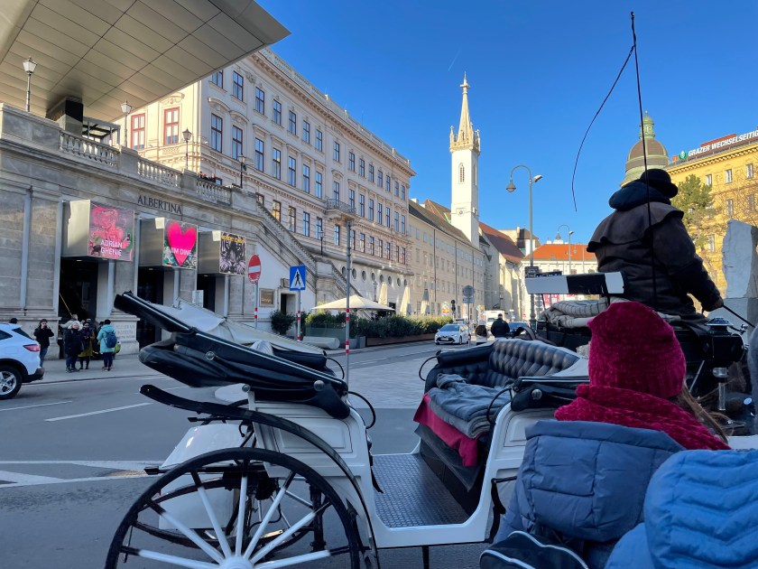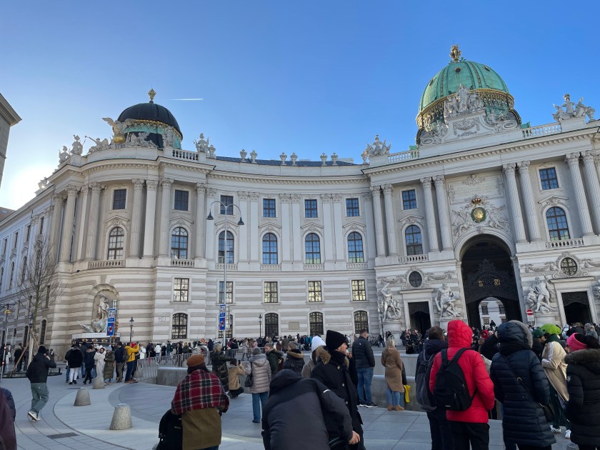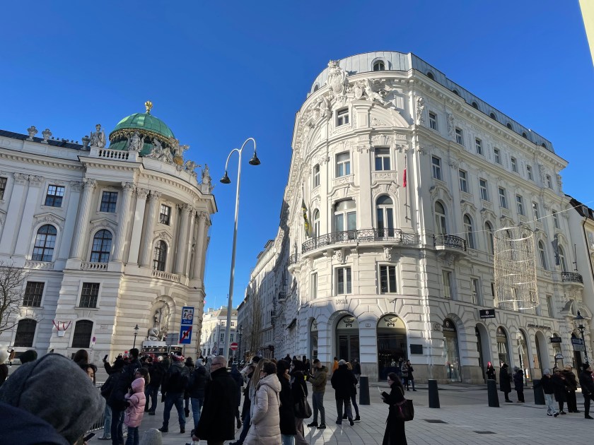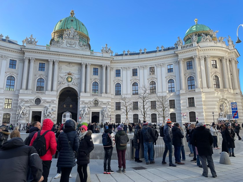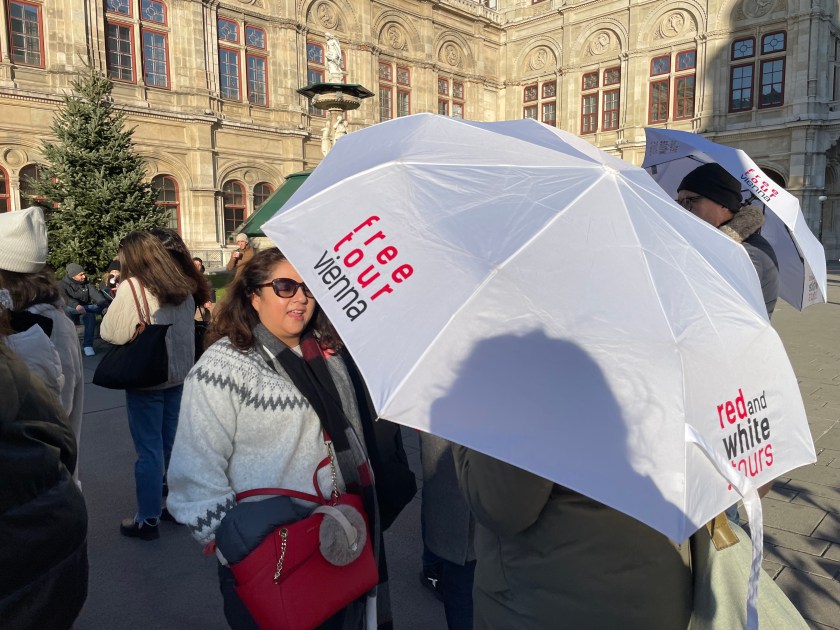 This morning we followed our daughter, Claire’s advice (she lived here a few years ago) and booked a free walking tour through Guru called “Walk a Free Tour, Vienna: Part 1—Top Highlights” at 10:15am. We walked to the meeting point by the Opera House. Our guide, was really terrific. Knowledgeable, excellent English, funny and friendly. He’s from Norway but has adopted Vienna. He studied Art History and living in Vienna is the perfect match for his dream life. He’s been here eight years. To be a tour guide here, you have to have an advanced degree in history.