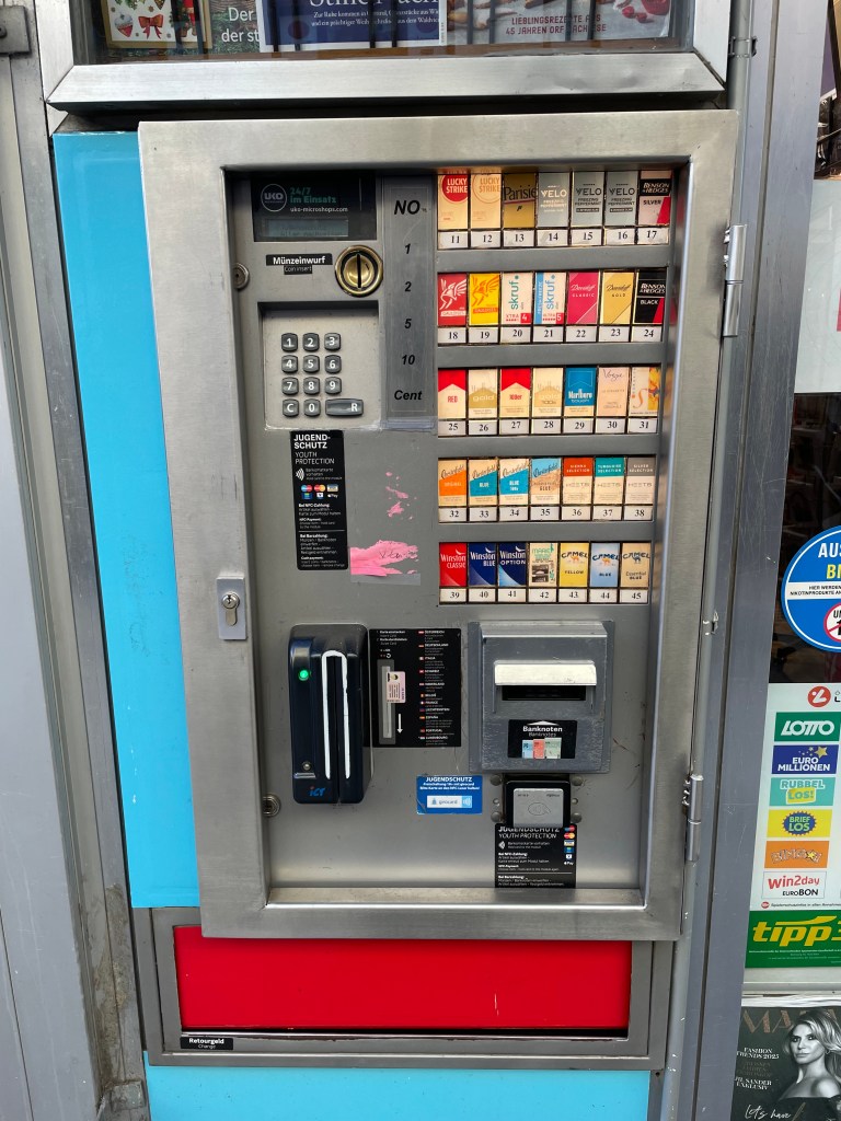 I find it interesting that so many people in Europe still smoke. Here’s a cigarette vending machine.