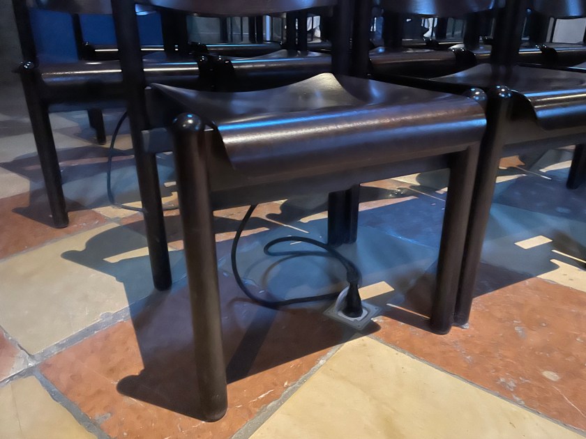 Here’s an interesting little detail–an electrical outlet in the floor.
