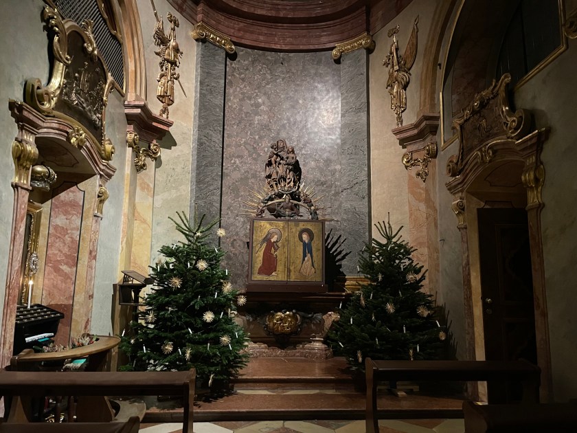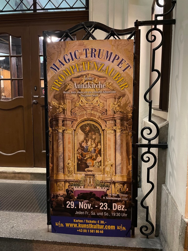 Tonight we listened to a brilliant trumpeter accompanied by a pianist/organist. It was oh, so good! He played classical pieces and lots of Christmas music, including many beloved German/Austrian carols.