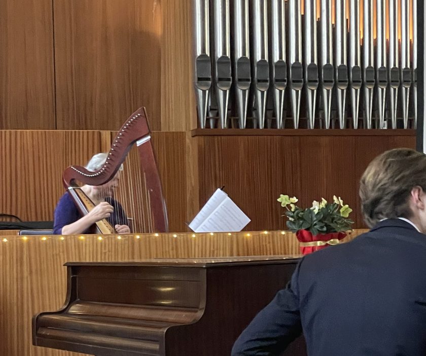 Our Sunday in Vienna was lovely. We had breakfast in the hotel, then John figured out how to find a train to take us to the neighborhood where the Vienna Leopoldstadt Ward meets. We were there early and visited with some of the good members before church. An older lady in the chapel was playing a small harp and we thought of Claire (this is the building she attended when she lived here).