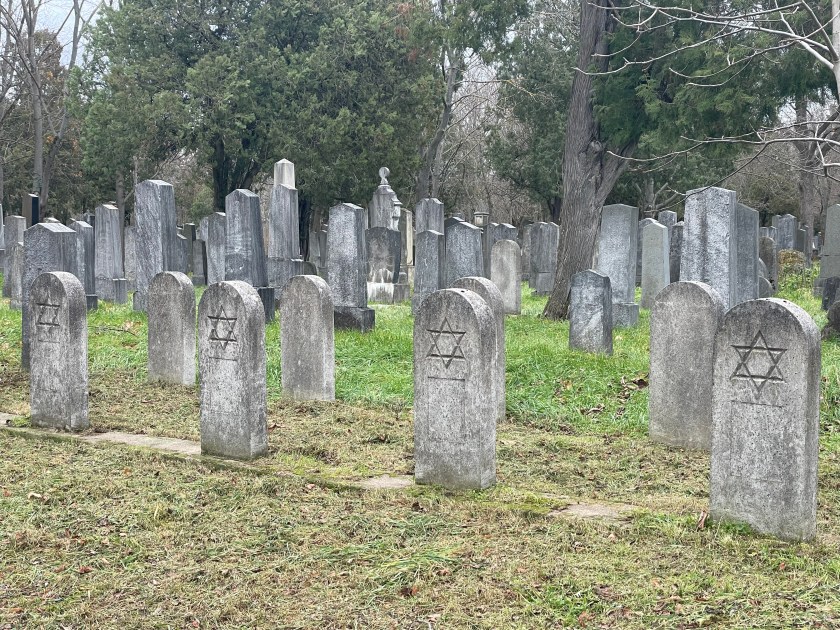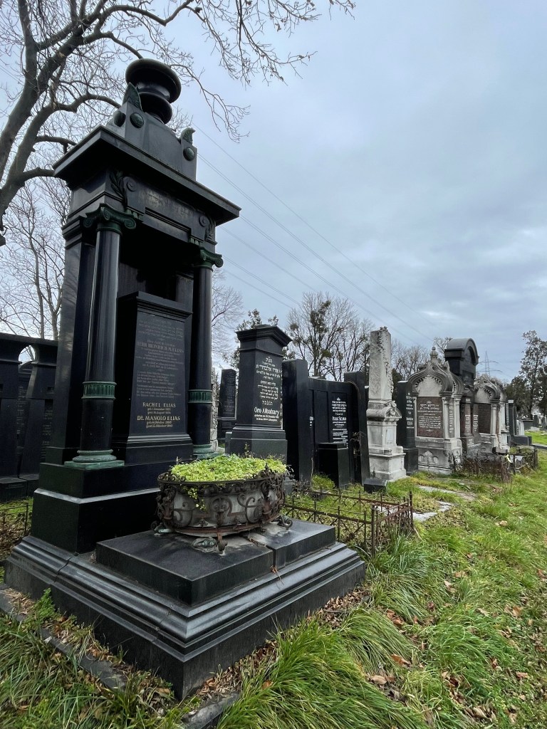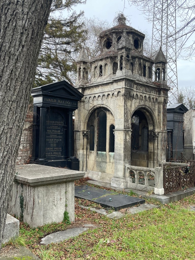 We started our wandering in the old Israelite (Jewish) section, a lush green burial ground with lots of architecturally interesting monuments and graves of prominent Jewish personalities. The graves were in all shapes and sizes, from simple headstones, to full structures that house many family members.