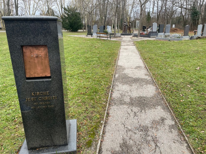 And here is the Latter-day Saint section, started about 10 years ago. The cemetery had reserved this area for nuns, but since there aren’t so many nuns anymore, they were not using the ground. They agreed to let our church use it. It’s in a prime location right behind the cemetery chapel.