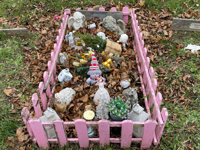 This cemetery area is where ashes of the cremated can be spread. It’s a natural wooded area.