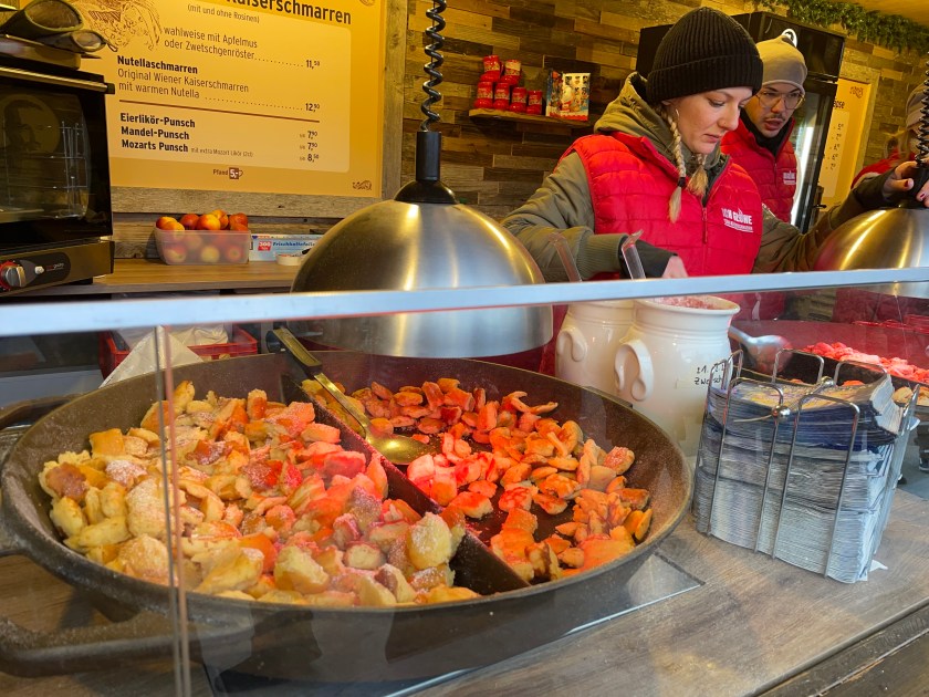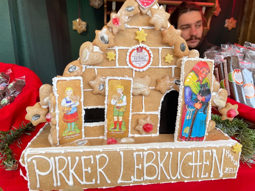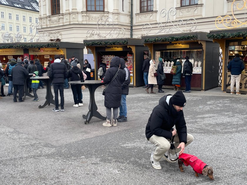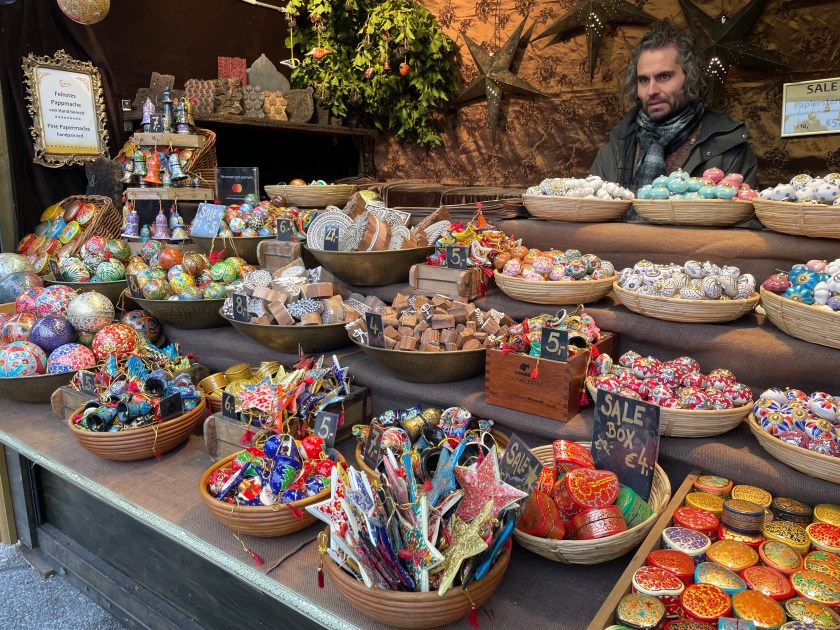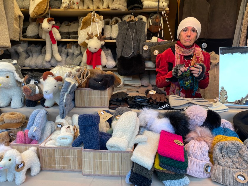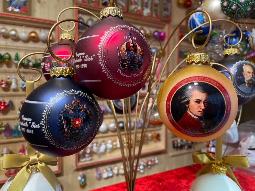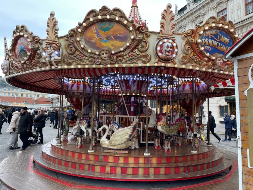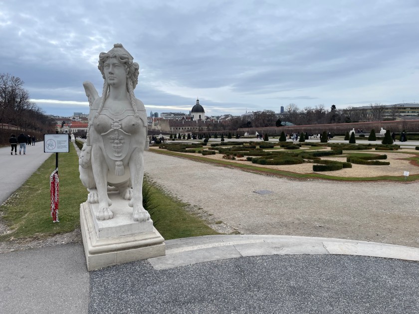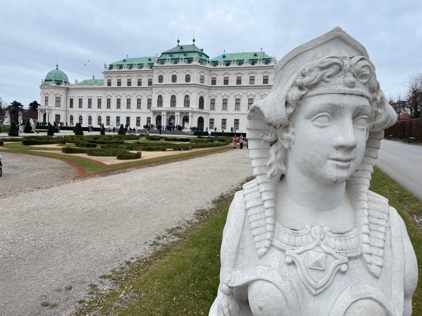 After a morning in the Vienna Central Cemetery, Signe dropped us off at the Belvedere. We walked around to the front of the palace, now an art museum. We had about 1.5-2 hours to wait until our ticket time to go in. It was Really Cold today. There is another Christmas Market here, so we enjoyed wandering through it while we waited for our turn to go into the museum.