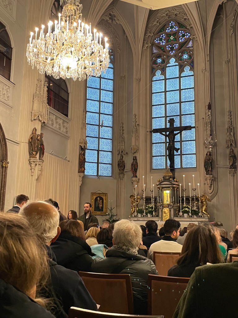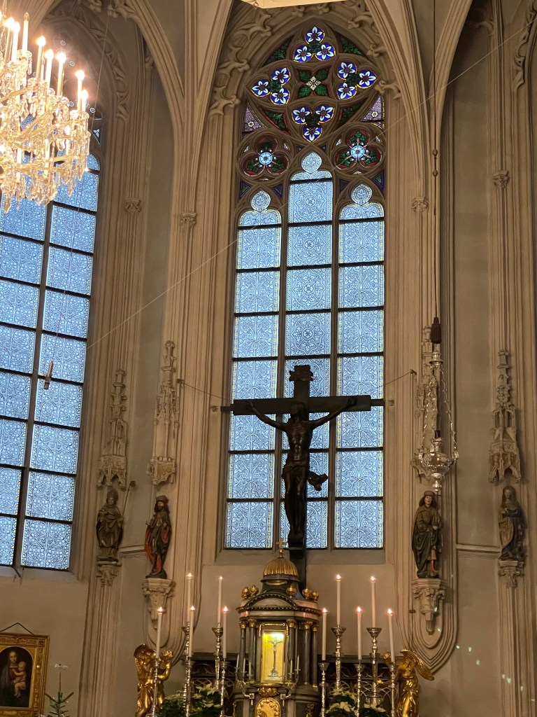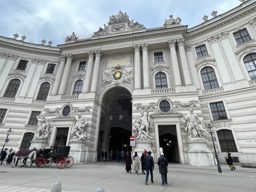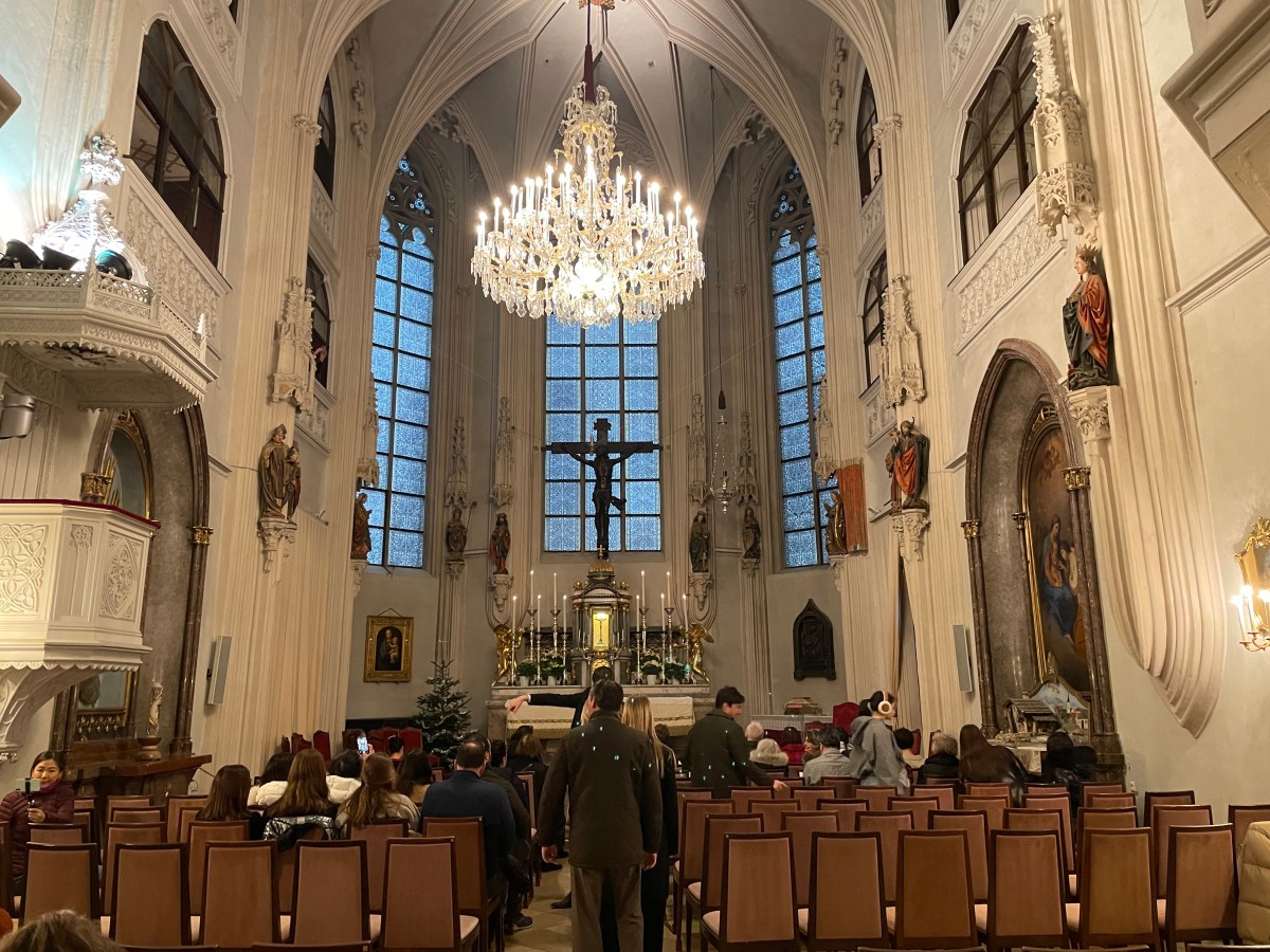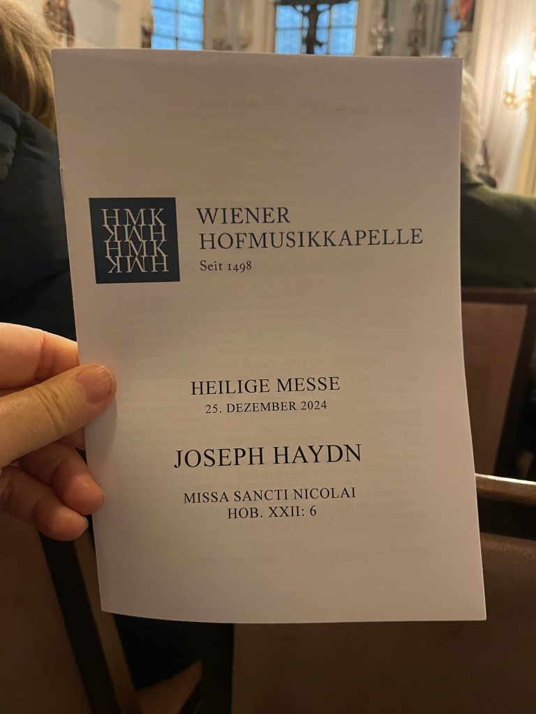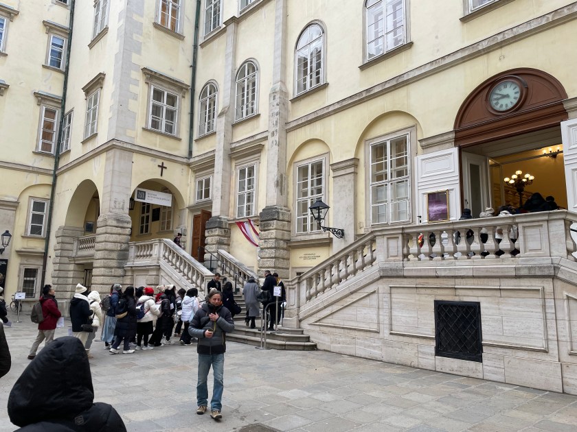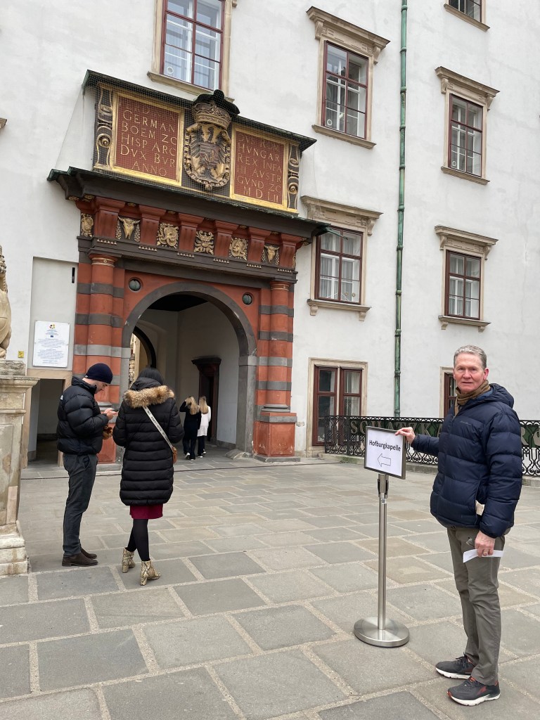 On this Christmas morning of 2024, we got up early and went out into a silent city to go to the Hofburgkapelle, which is the chapel in the Hofburg Palace where the royals worshipped. We walked through totally empty streets–no one was out yet. It was still and quiet. No cars, no people, no shops open. I was imagining the people of Vienna snug in their apartments, enjoying the aftermath of their Christmas Eve celebrations and food.