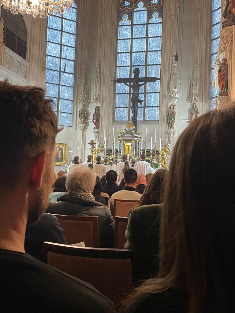 Then the service began. The mass was done in Latin with a bit of German. We had a program with all the words and translations to German so we were able to follow along. It was a small chapel similar in size to the other 2 chapels where we’ve enjoyed evening concerts. It was very beautiful. We were asked not to record any of the music or take photos during the mass.