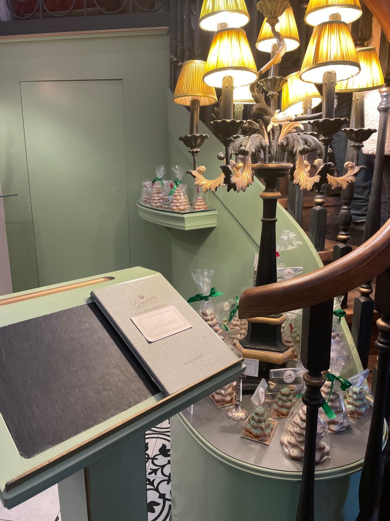 We had to squeeze past the line of people (telling them we were only looking, not staying to be seated). On the lower level was a small gift shop with pastries, cookies and treats. We went up the elevator and got a quick look around before we were asked to leave because we had no reservation. The place was full of traditional Austrians having a traditional Christmas afternoon tea.