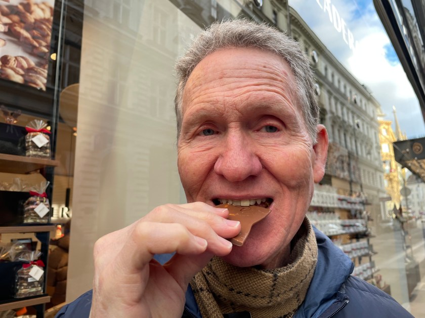 The power of tour guide books (think Rick Steves and others) is evident by the number of tourists standing in lines at various cafes, coffee shops and hotels. These guides encourage visitors by recommending they not leave a place without tasting this or that. We saw several lines of people, winding wound around a block, just to buy a piece of chocolate Sachertorte cake. (Which the locals told us is a bit dry, anyway.)
