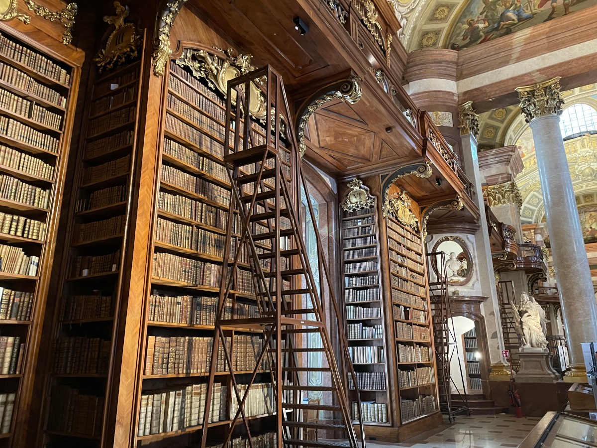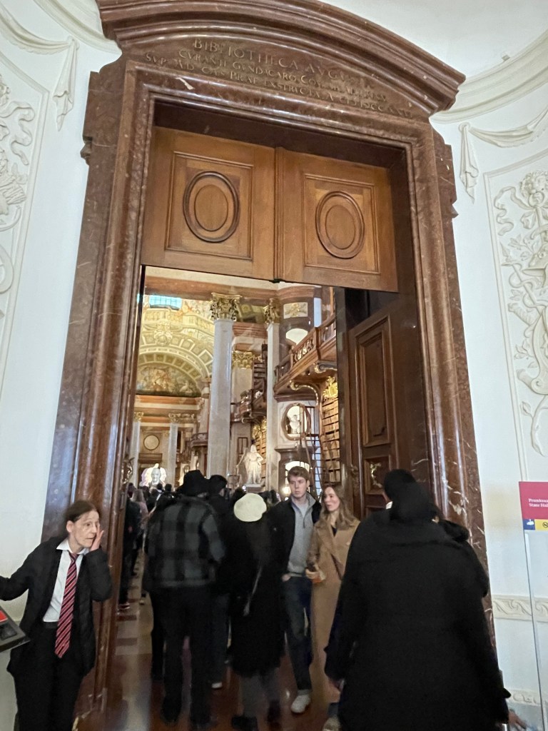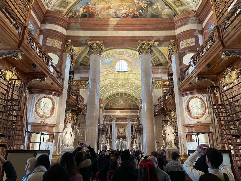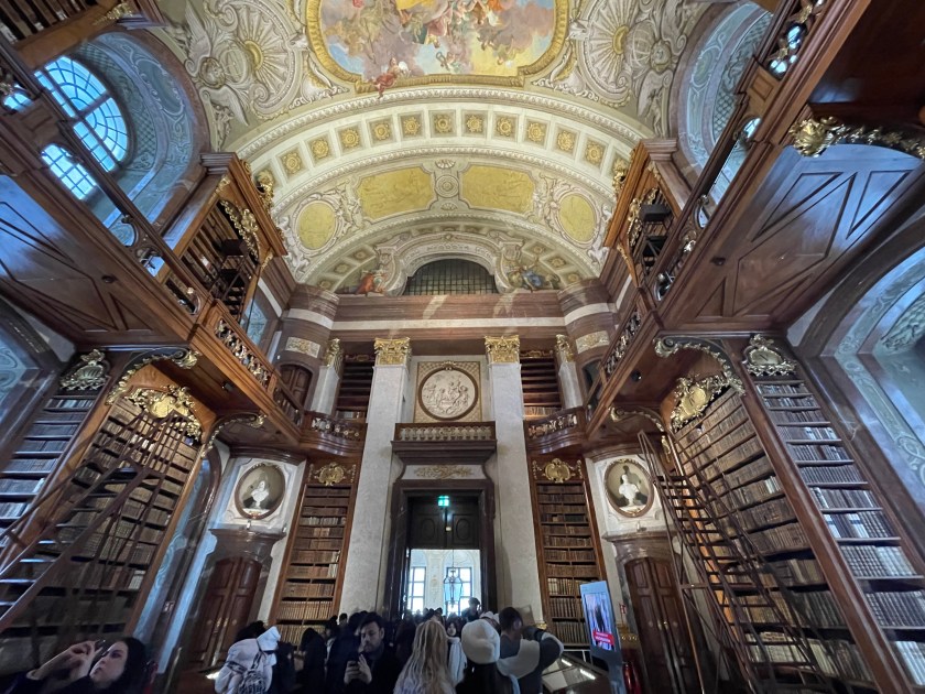 We spent about an hour there, mostly reading about the composer Anton Bruckner, who was born here and lived 200 years ago. This library has all of his papers and works and he was highlighted throughout the library–his story was told with artifacts and music from his life.